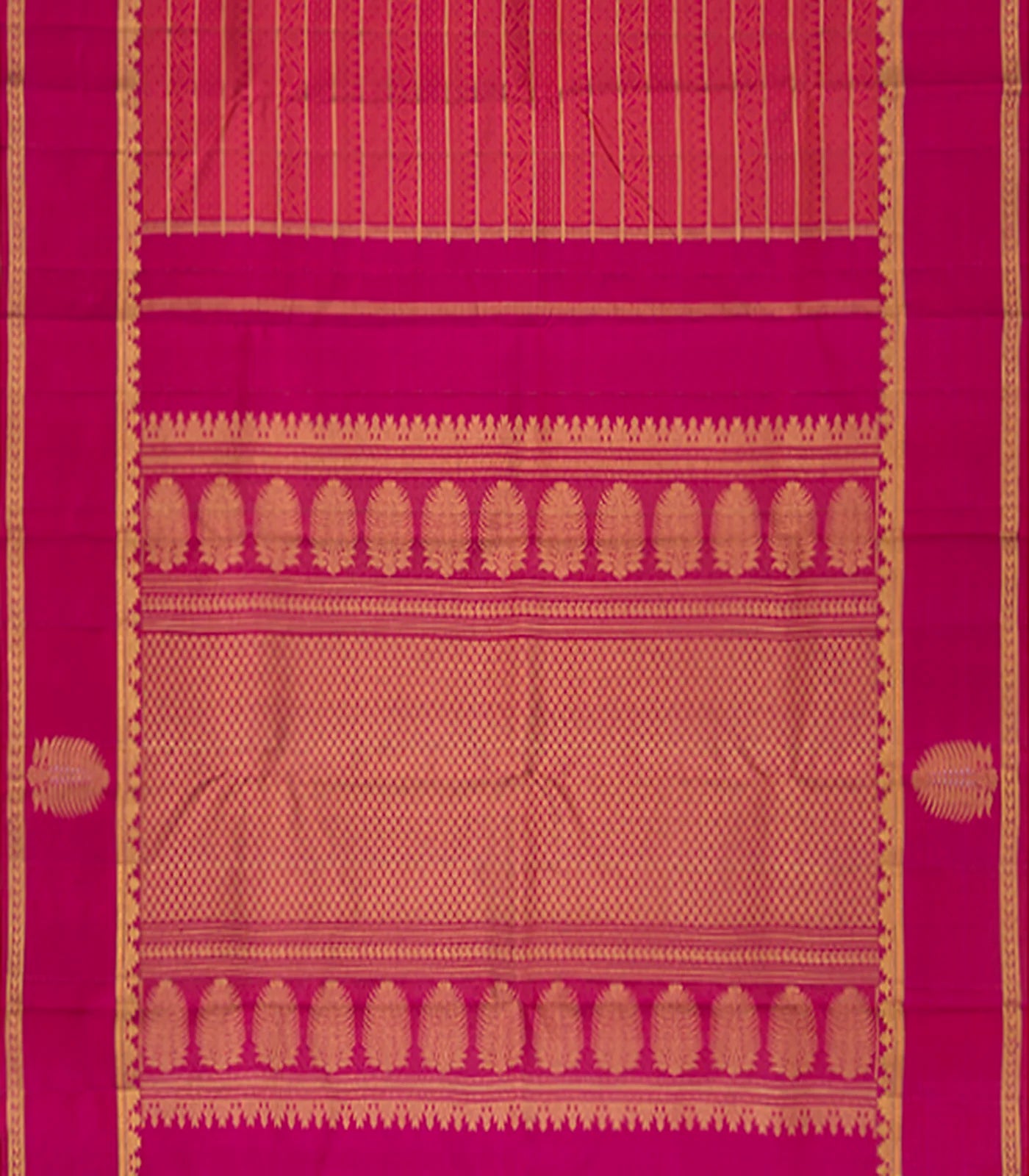 Pink Handwoven Kanchipuram Silk Saree With Small Motifs In Striped Pattern and Beldari Zari Stripes-Pink