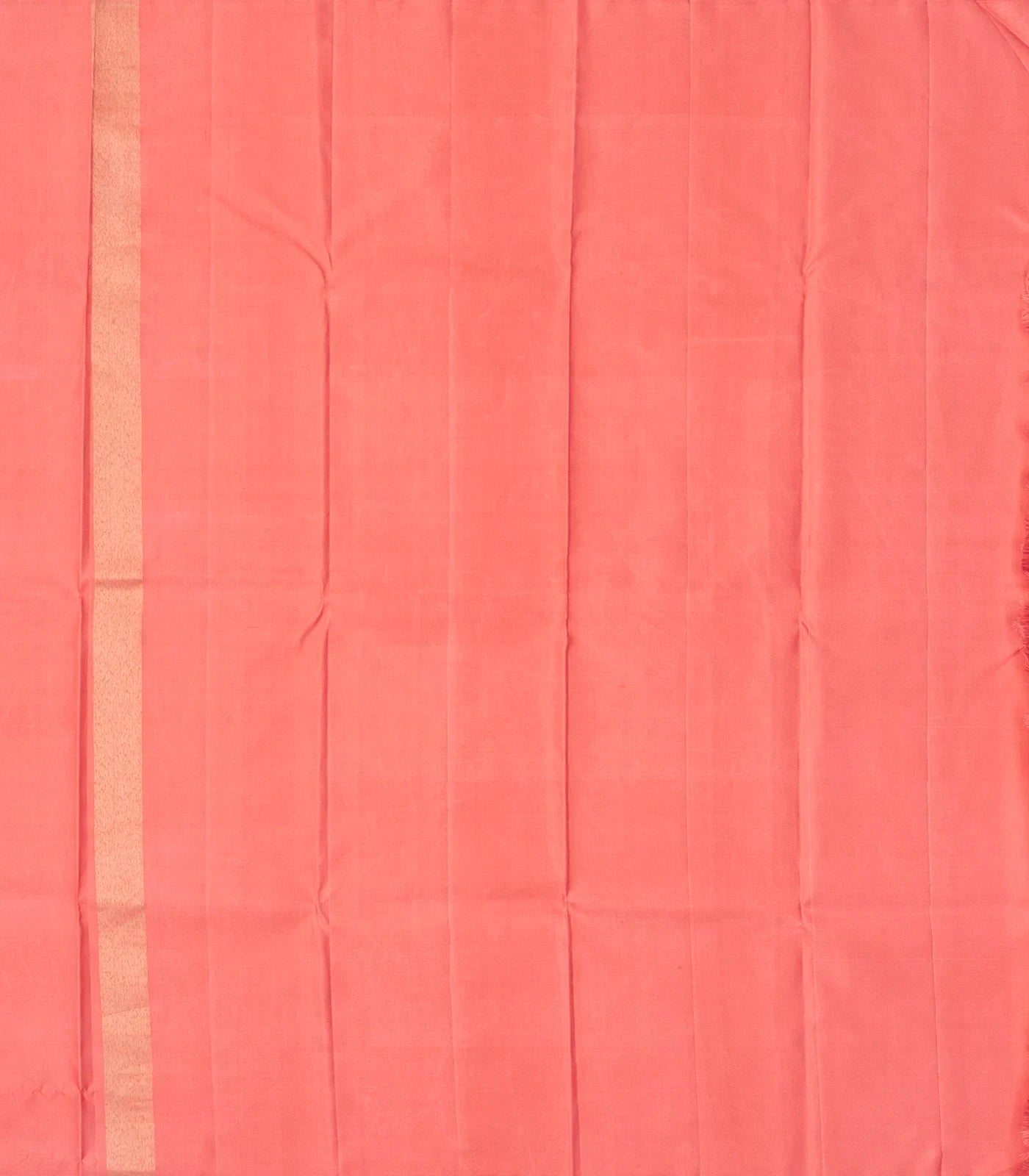 Pink & Orange Handloom Kanchipuram Silk Saree With Checks
