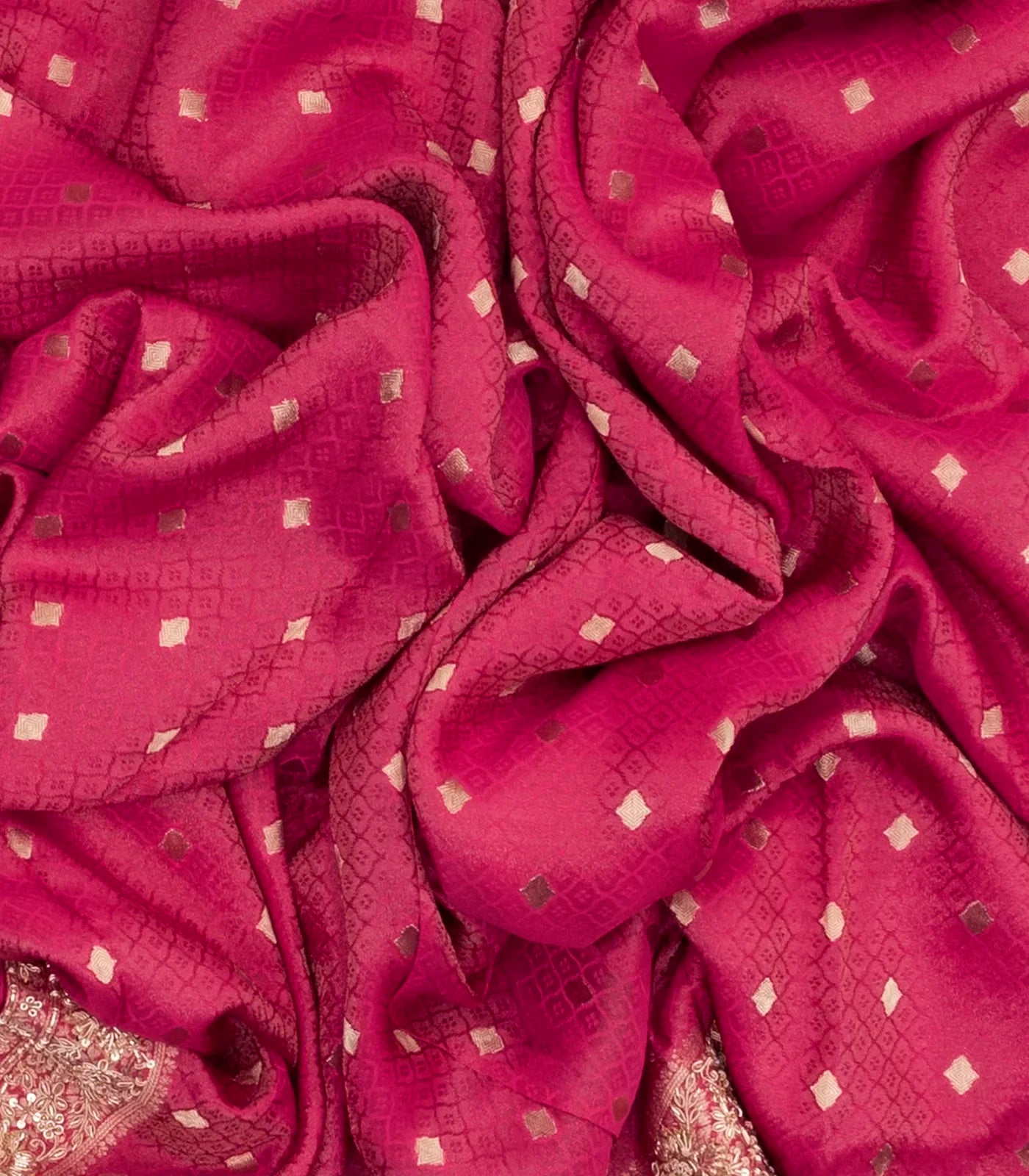 Pink Woven Crepe Brocade Saree With Embroidered Floral Motifs-EN1650
