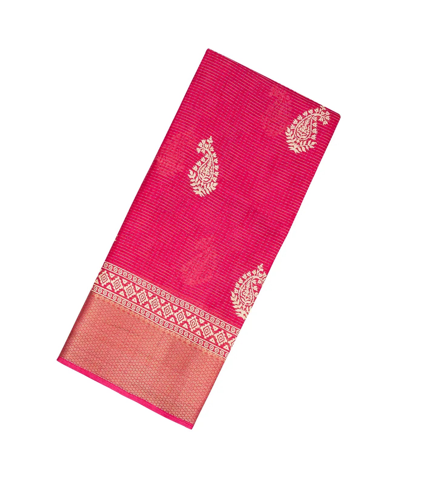 This woven synthetic dola silk saree is filled with printed floral motifs in pink body along with border and pallu