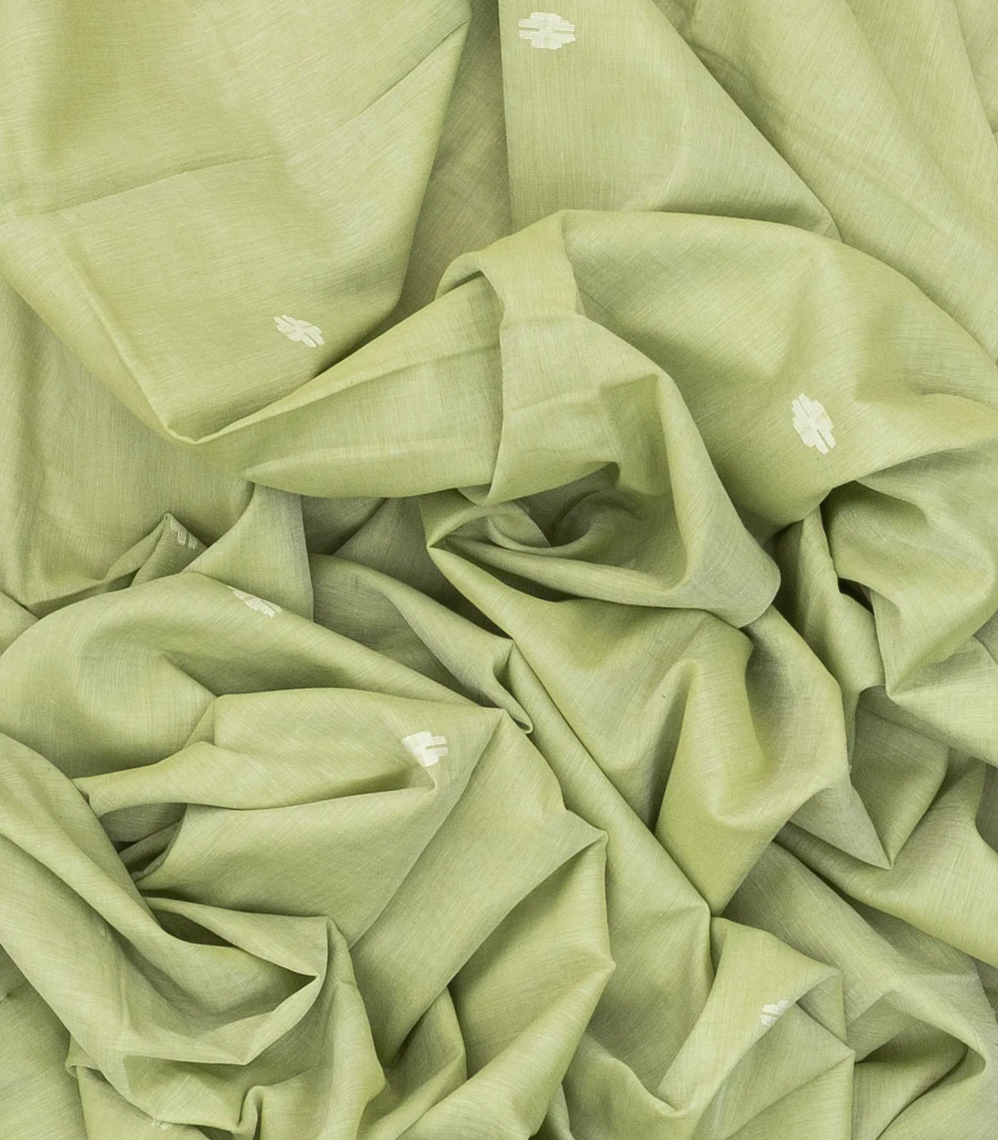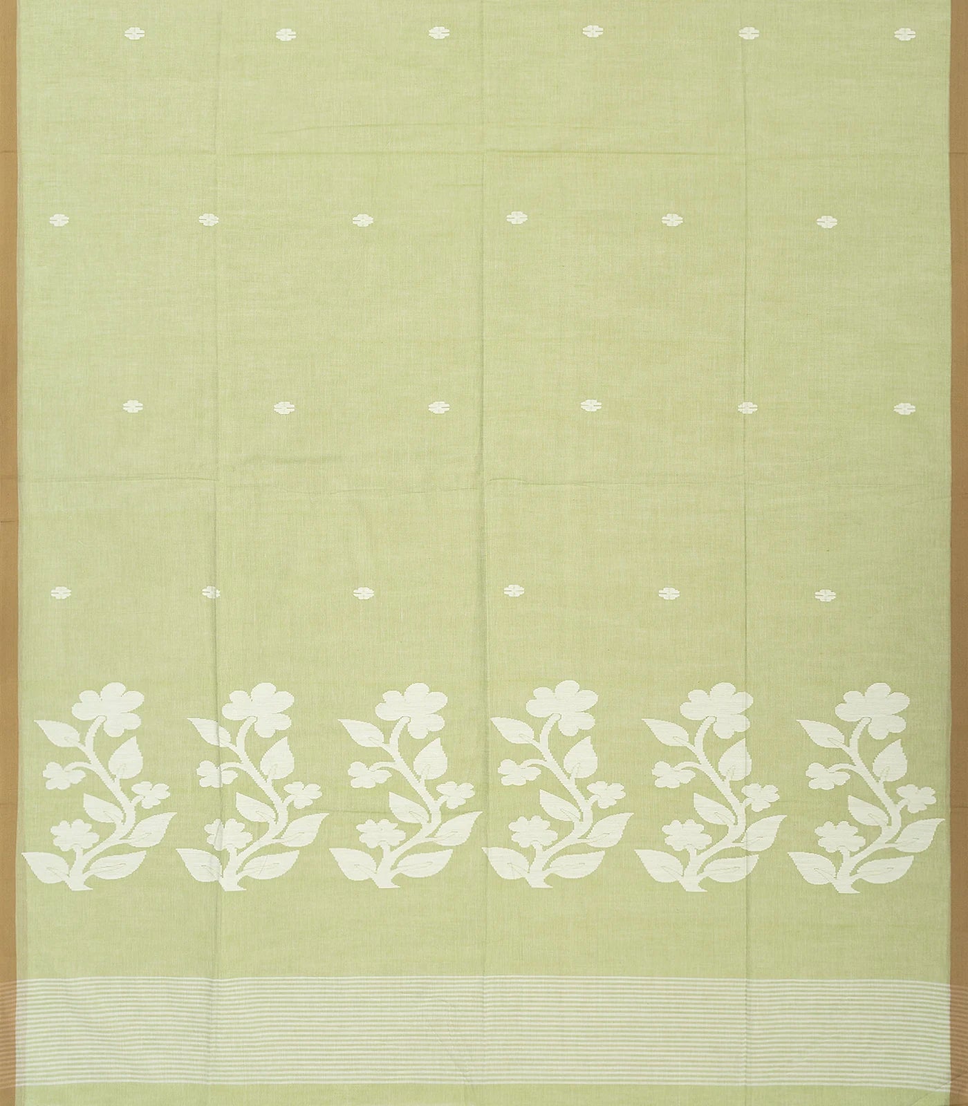 Pista Green Handloom Bengal Cotton Saree With Floral Buttas-BG1308