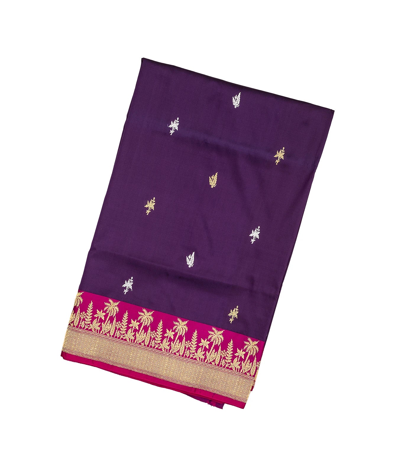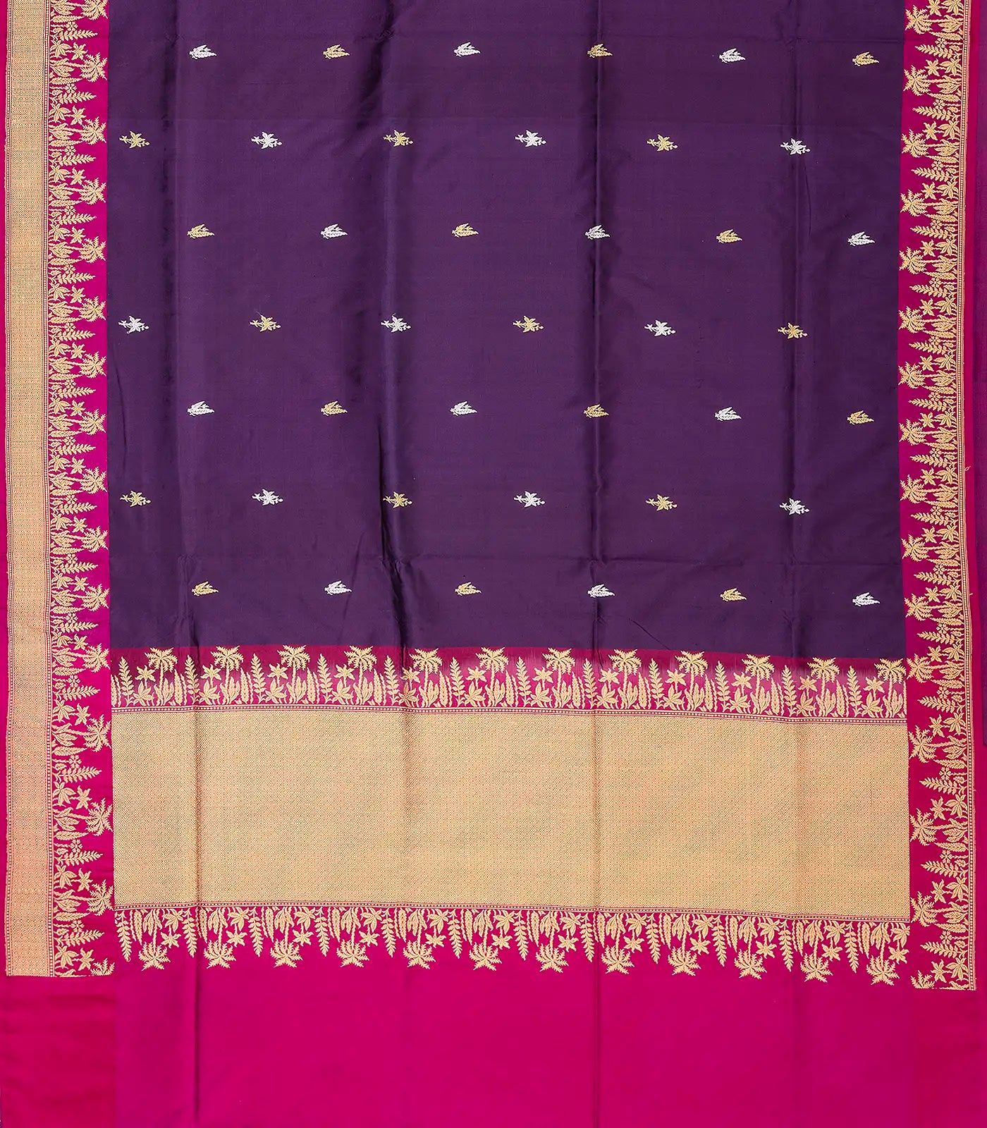 Purple Handloom Banarasi Silk Saree With Floral Zari Motifs-BE1330
