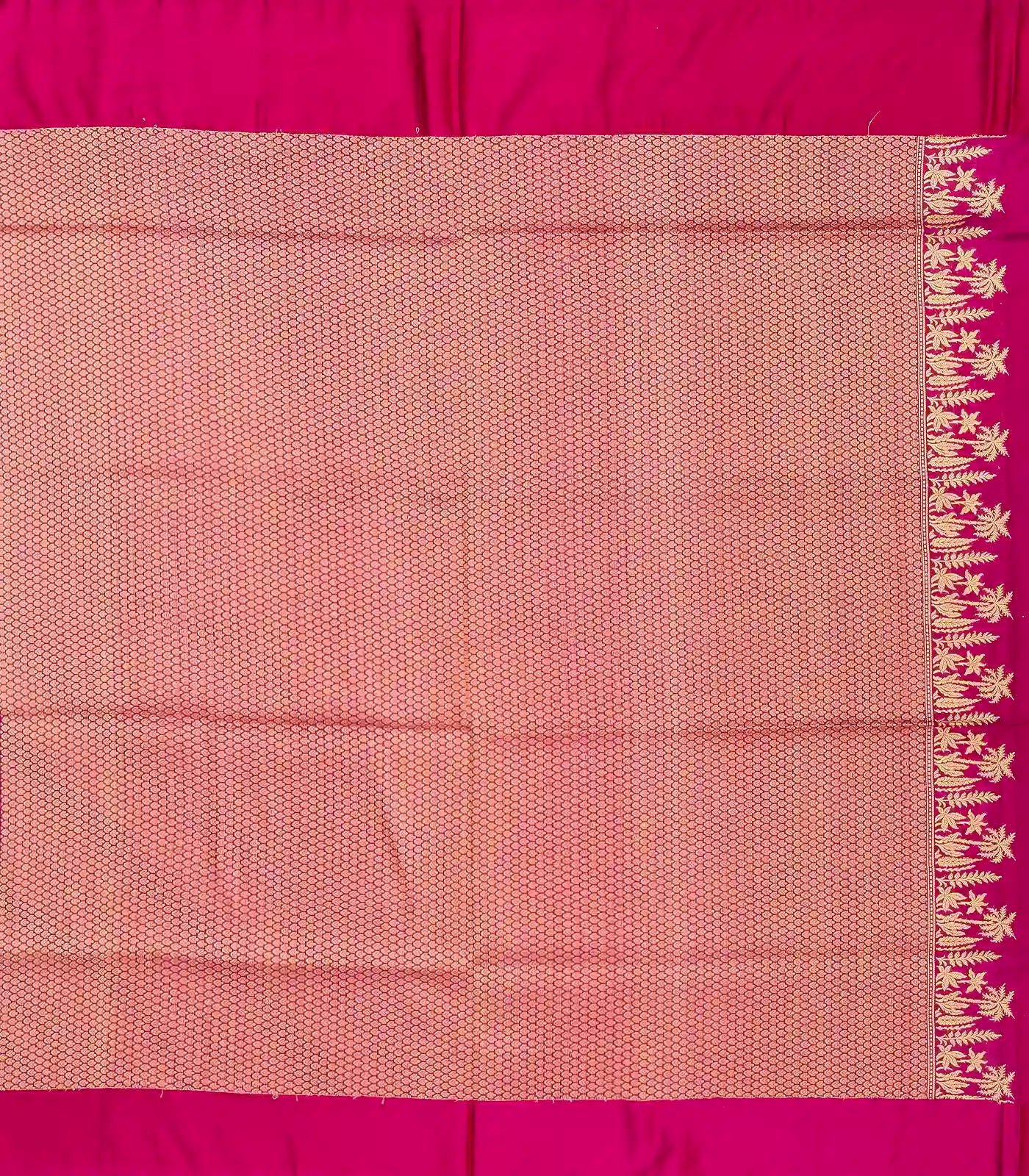This handwoven banarasi silk saree is filled with floral zari motifs in purple body along with border and pallu