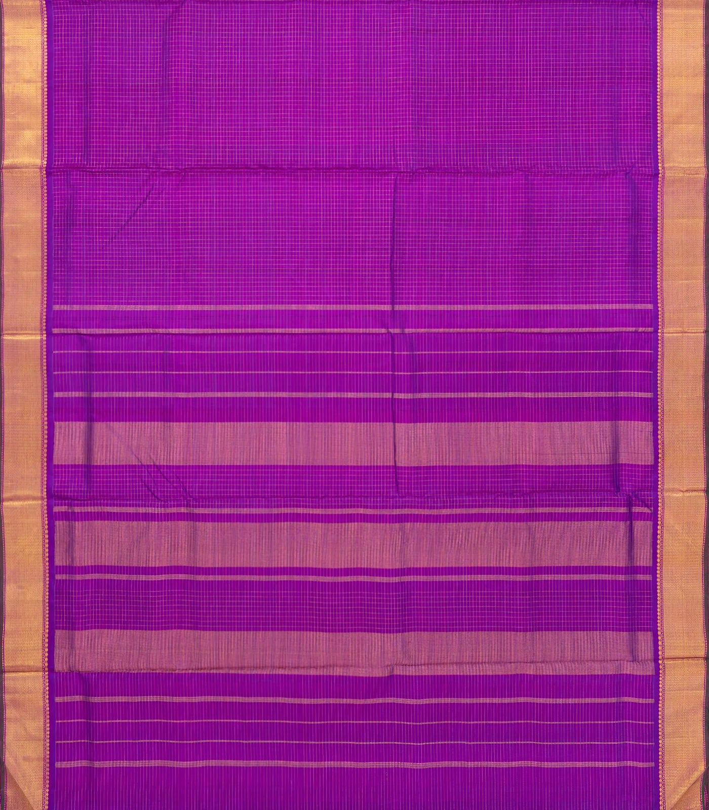 Purple Handloom Kanchipuram 9 Yards Silk Saree With Zari Checks & Border-KA13386