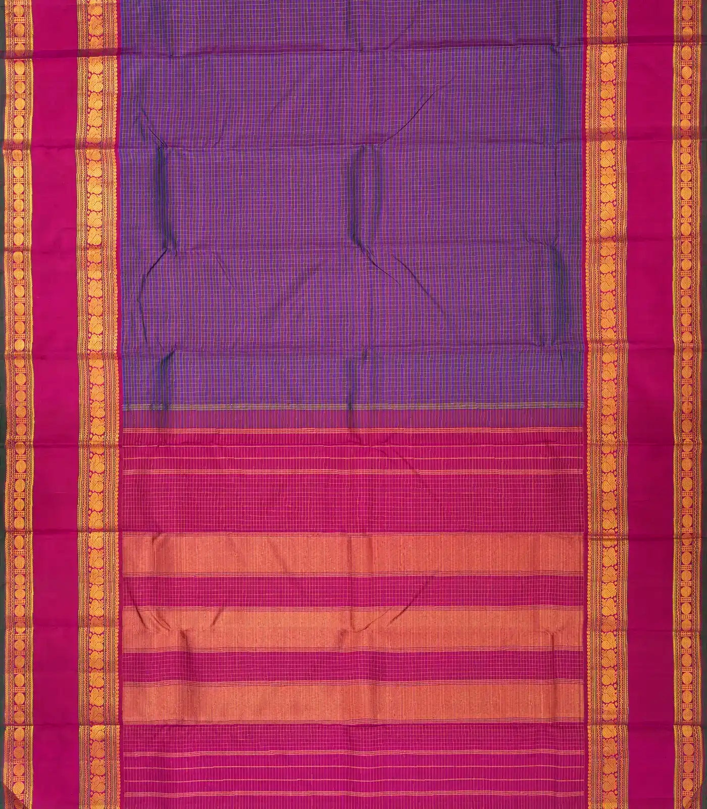 Purple Handloom Kanchipuram Silk Saree With Checks-KA12236