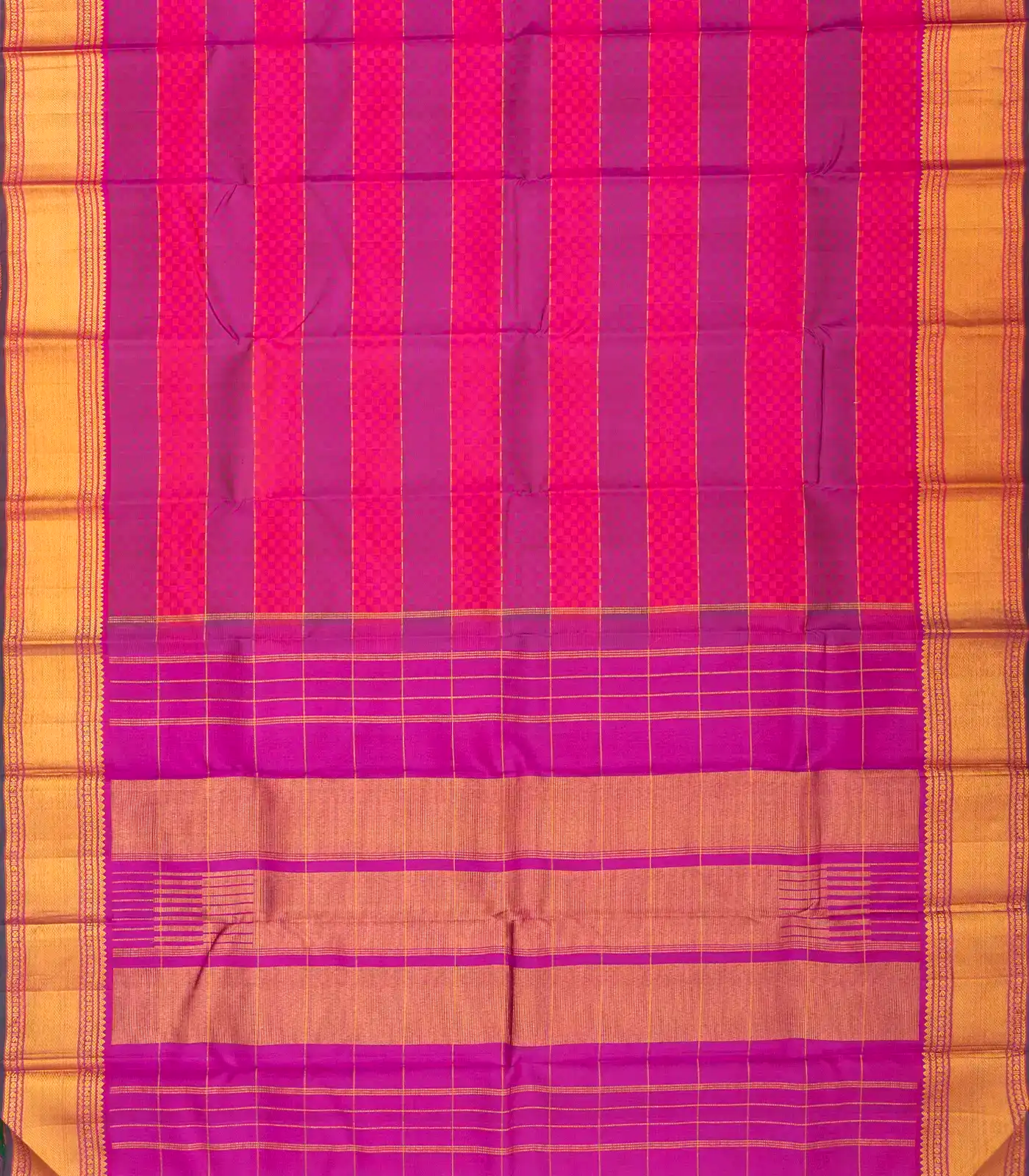 Purple Handloom Kanchipuram Silk Saree With Payadi Checks-KA12108