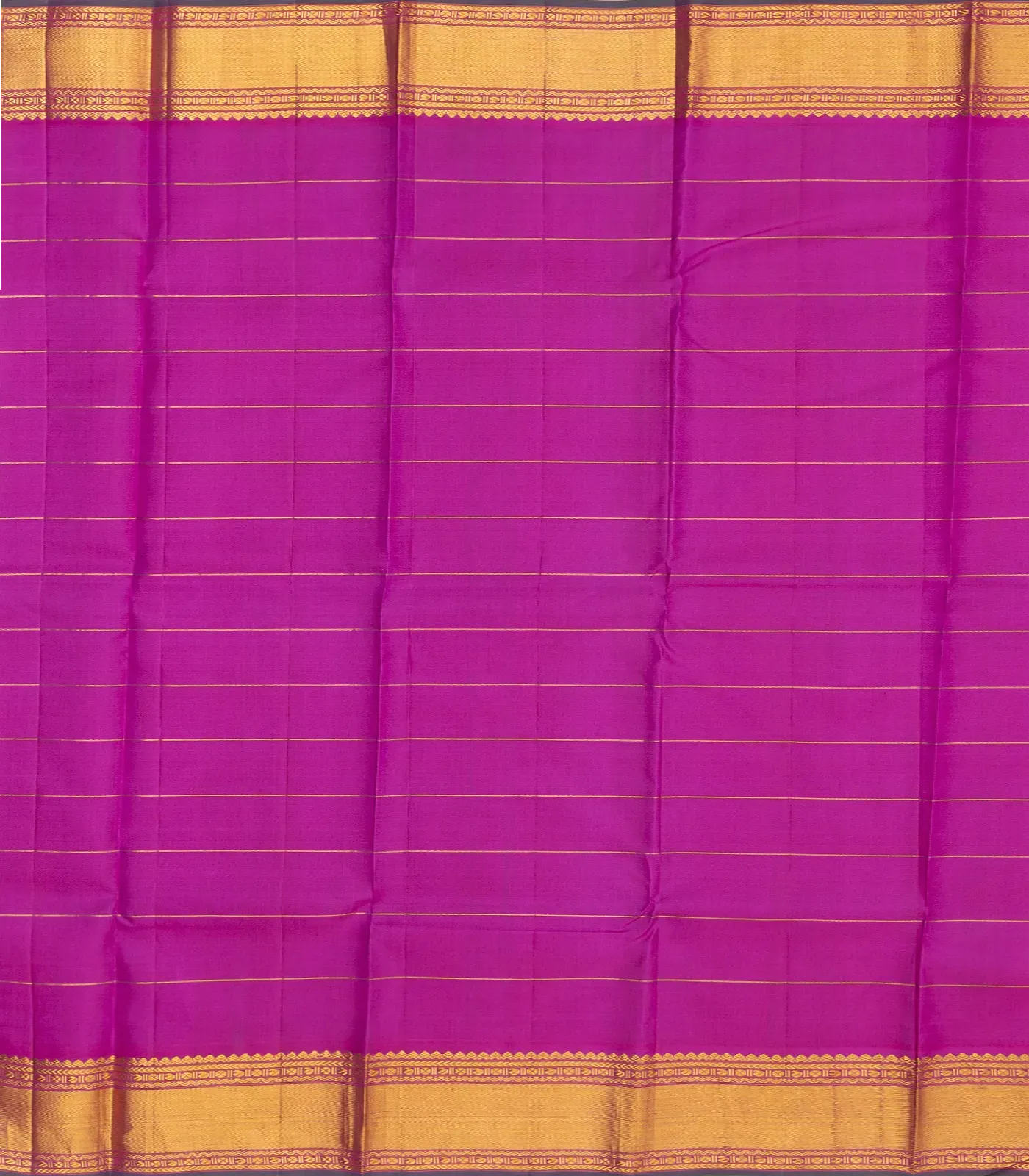 This handwoven kanchipuram silk saree is filled with payadi checks in purple body along with border and pallu