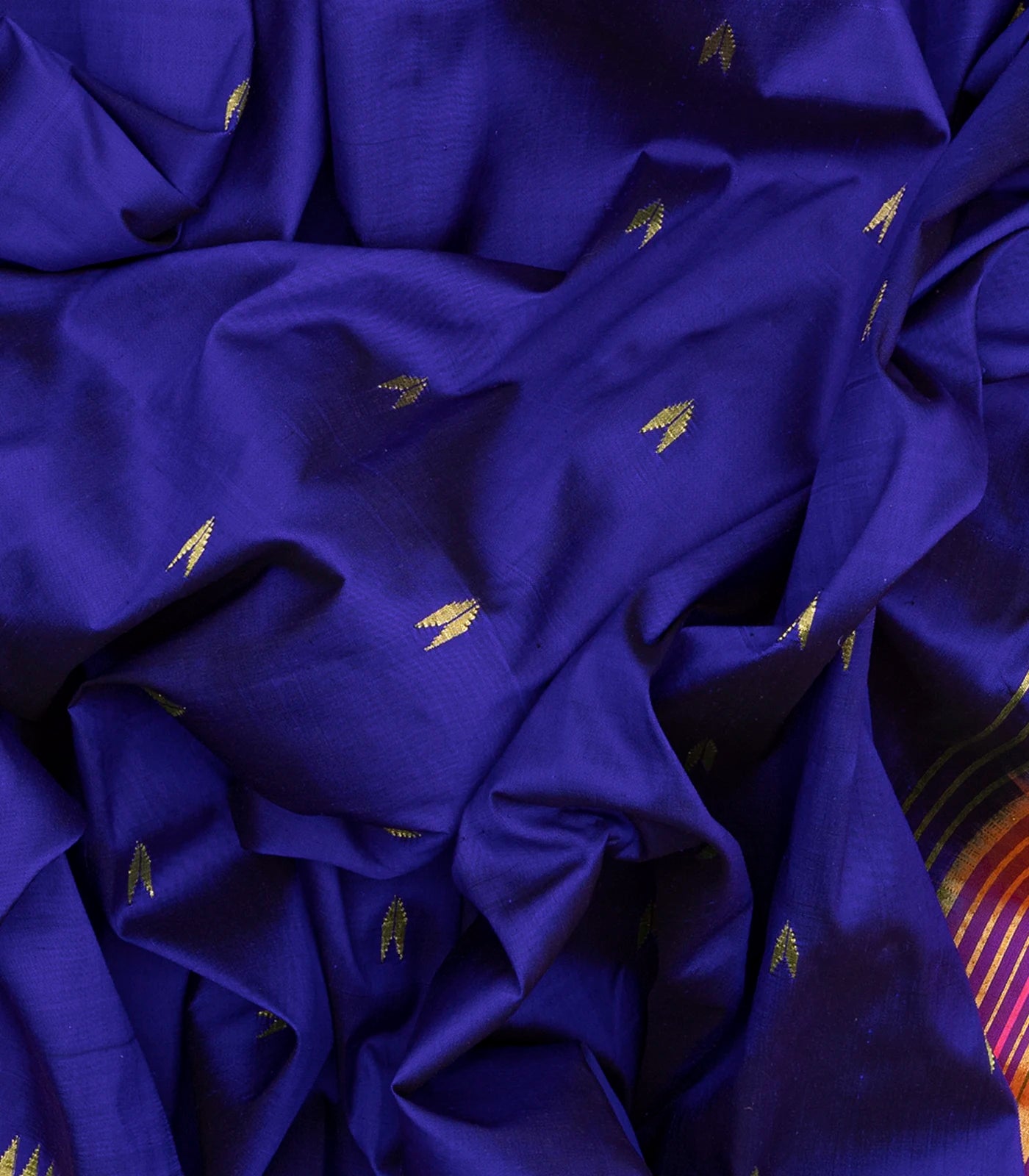 Purple Handloom Paithani Silk Saree With Zari Buttas & Temple Border-Purple
