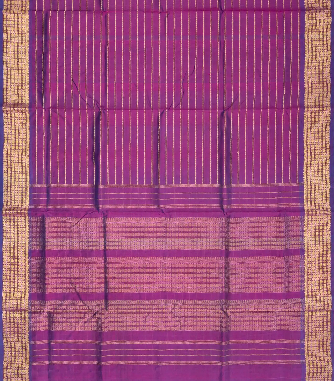 Purple Handloom Silk Cotton Saree With Beldari Stripes-SC3718