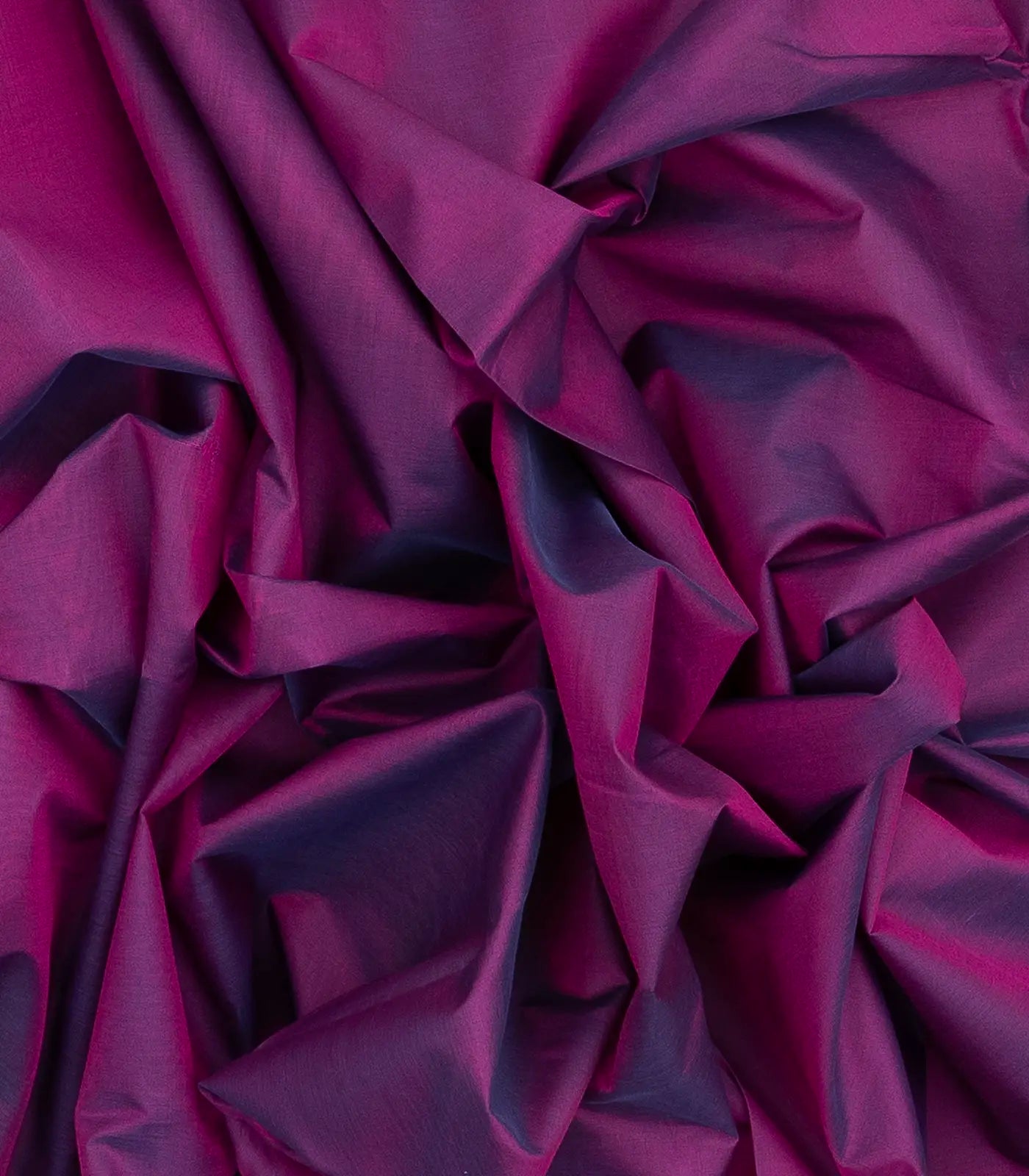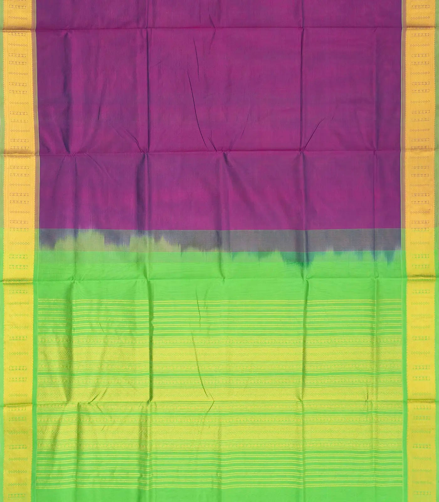 This handwoven silk cotton saree is filled with plain purple body along with contrast zari border and pallu