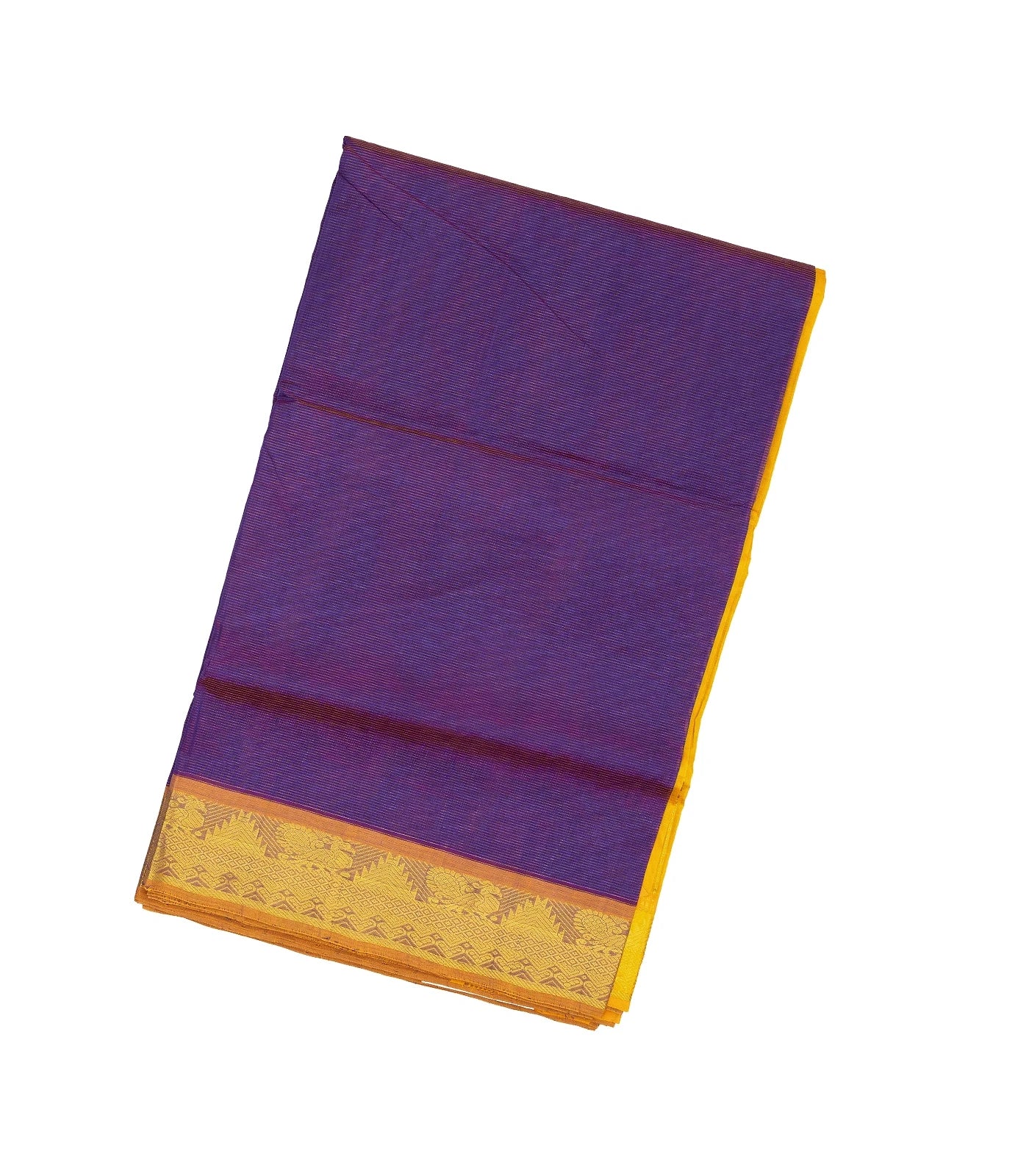 This handwoven silk cotton saree is filled with zari stripes in purple body along with zari border and pallu