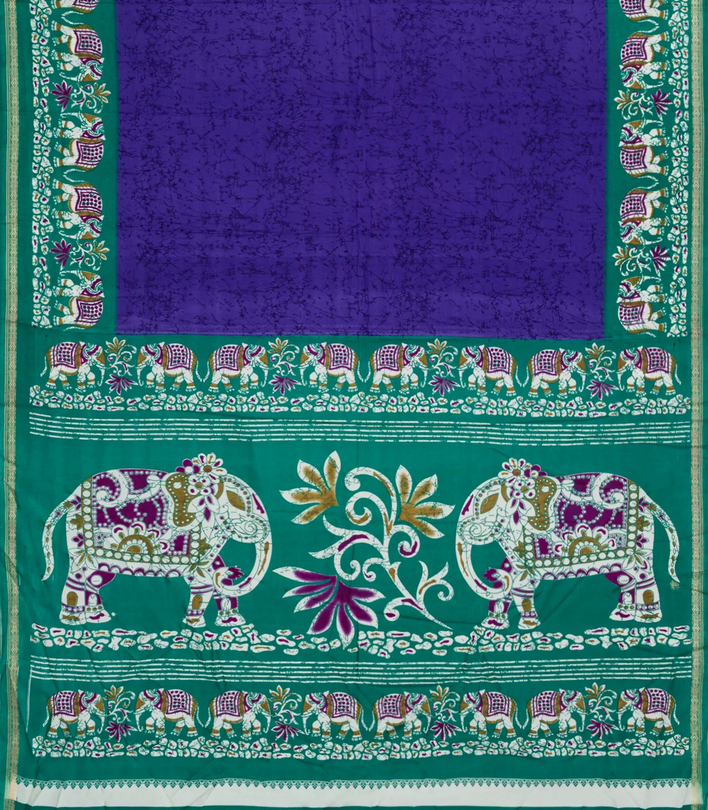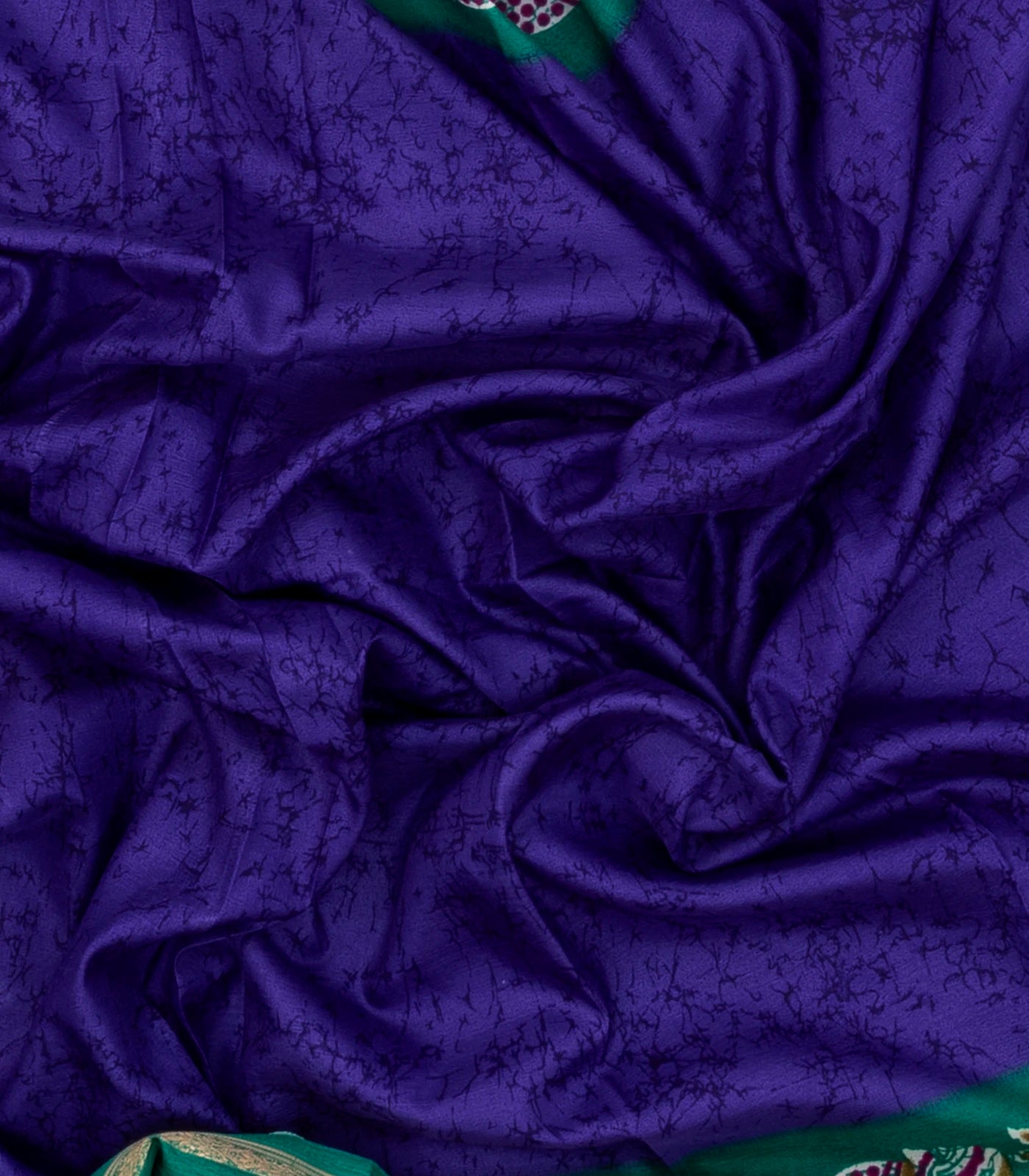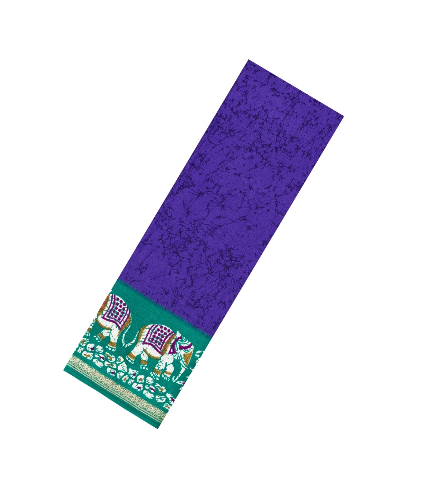 This synthetic dupion saree is filled with printed abstract motifs in purple body along with contrast border and pallu