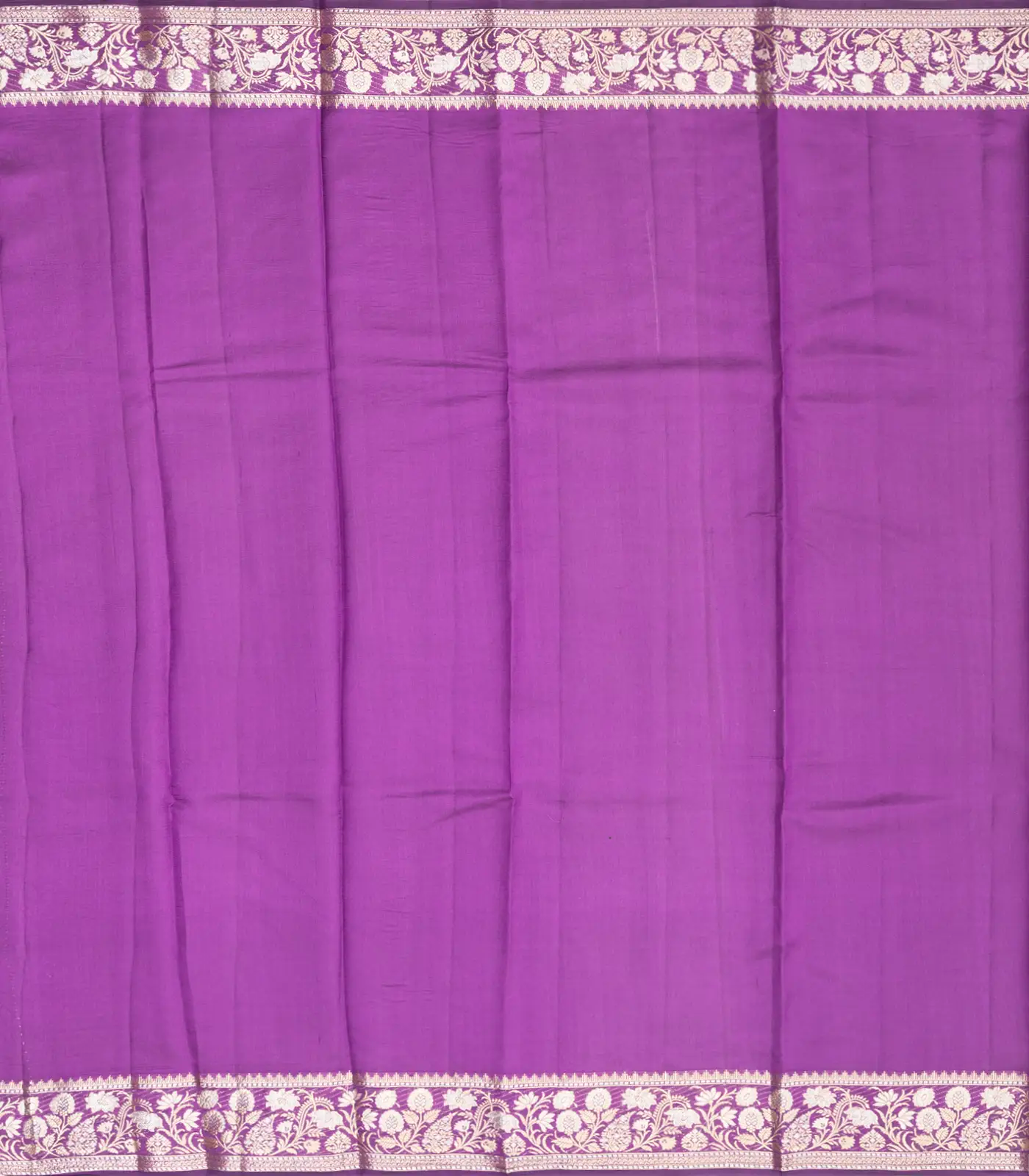 This woven dupion silk saree is filled with floral motifs in purple body along with floral zari border and pallu