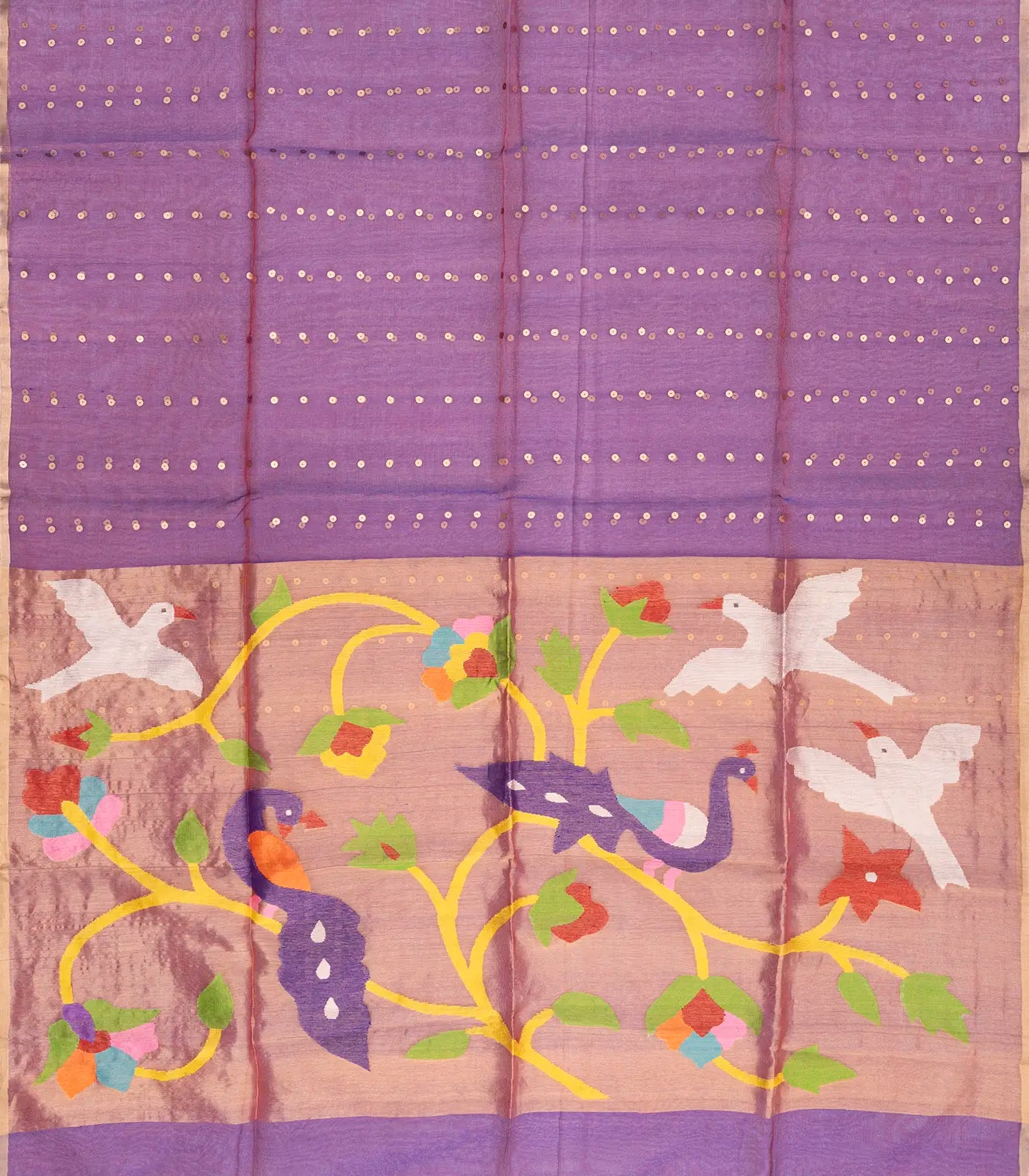 Purple Woven Organza Saree With Sequin Work & Paithani Pallu-TU2646