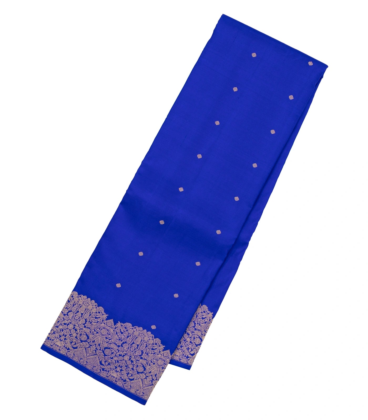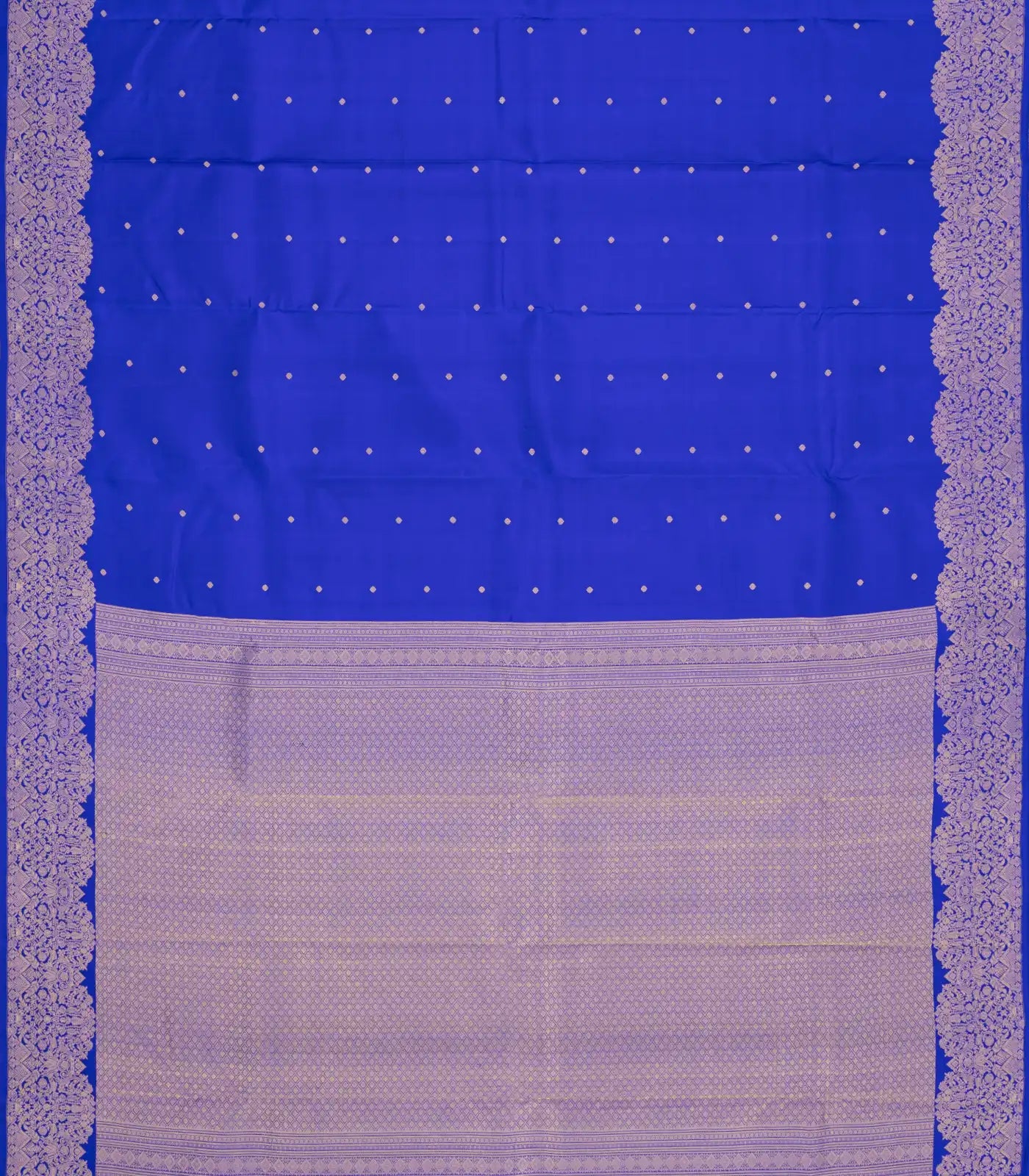 This woven pure silk saree is filled with floral buttas in purple body along with running border and pallu