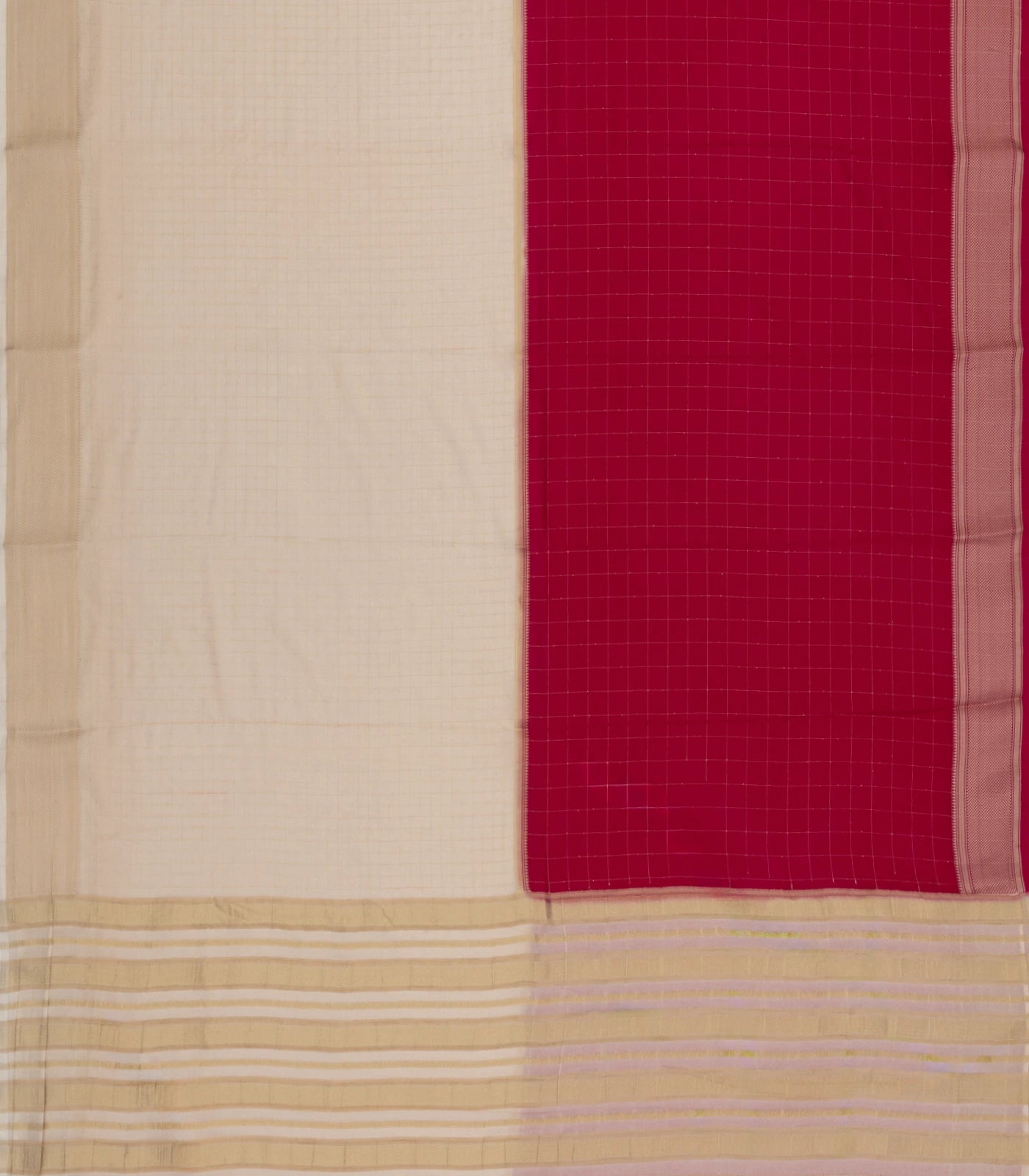Red & Crem Woven Art Crepe Half & Half Saree With Checks -BL4693