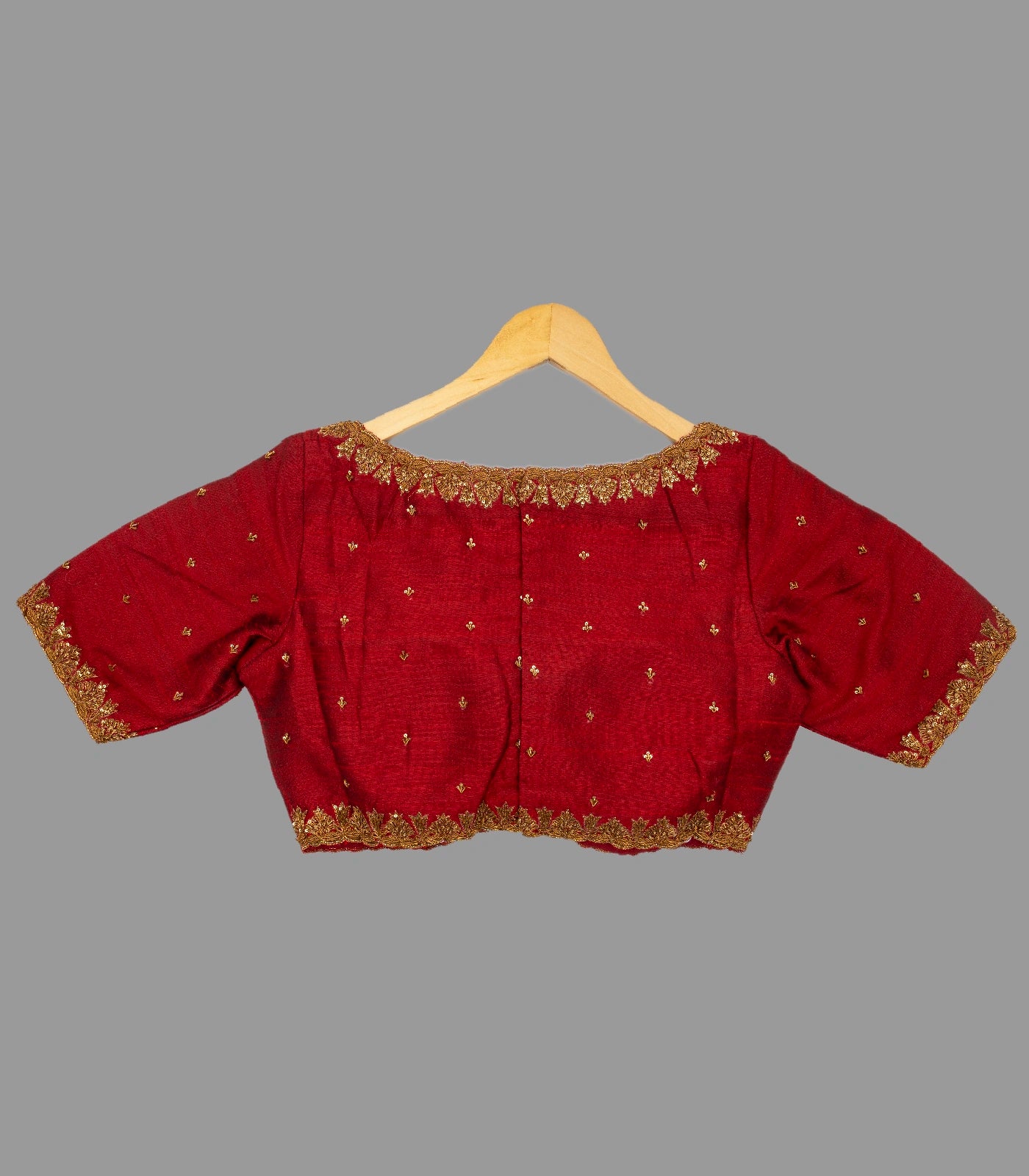 Ready made blouse Waist: 37 cms, Chest: 45 cms, Sleeve Length: 27 cms, Sleeve Round: 28 cms