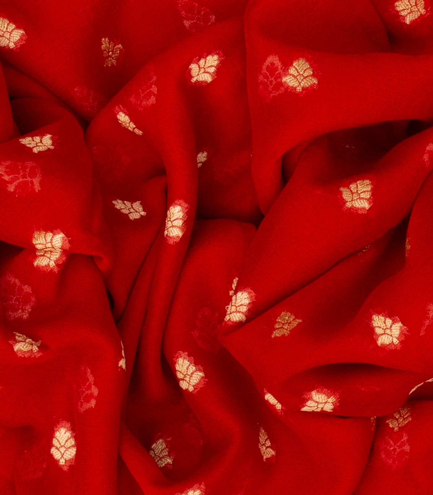 Red Handloom Banarasi Khaddi Georgette Saree With Floral Buttas-Red