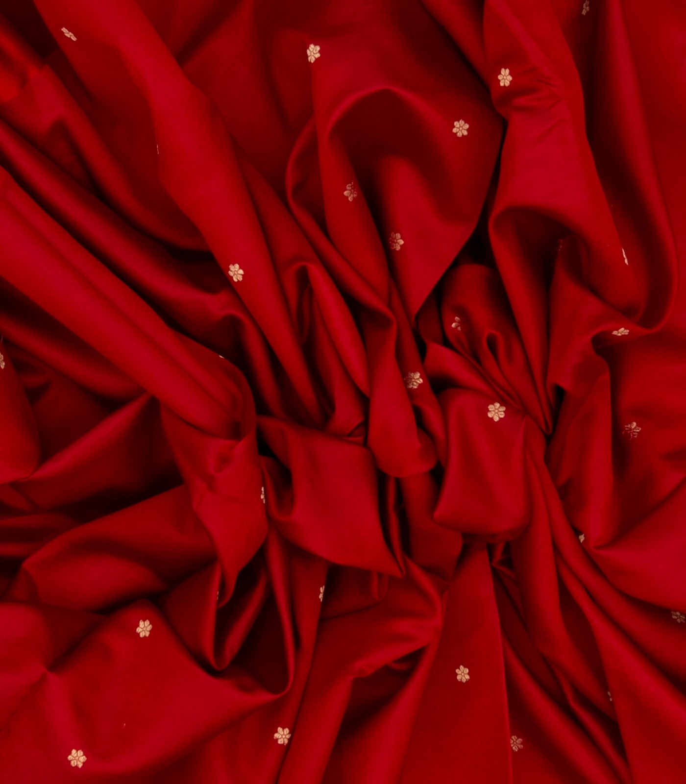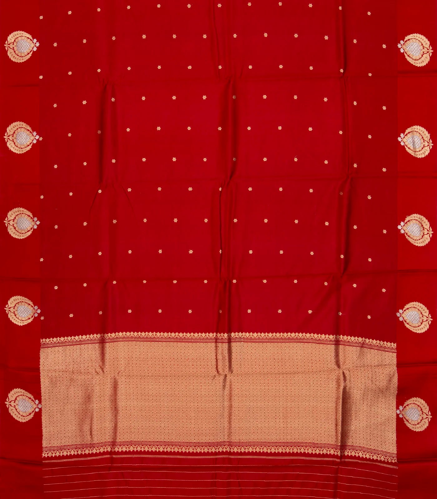 Red Handloom Banarasi Silk Saree With Floral Buttas-BE1469