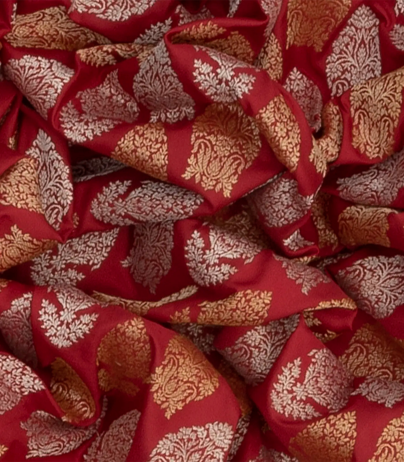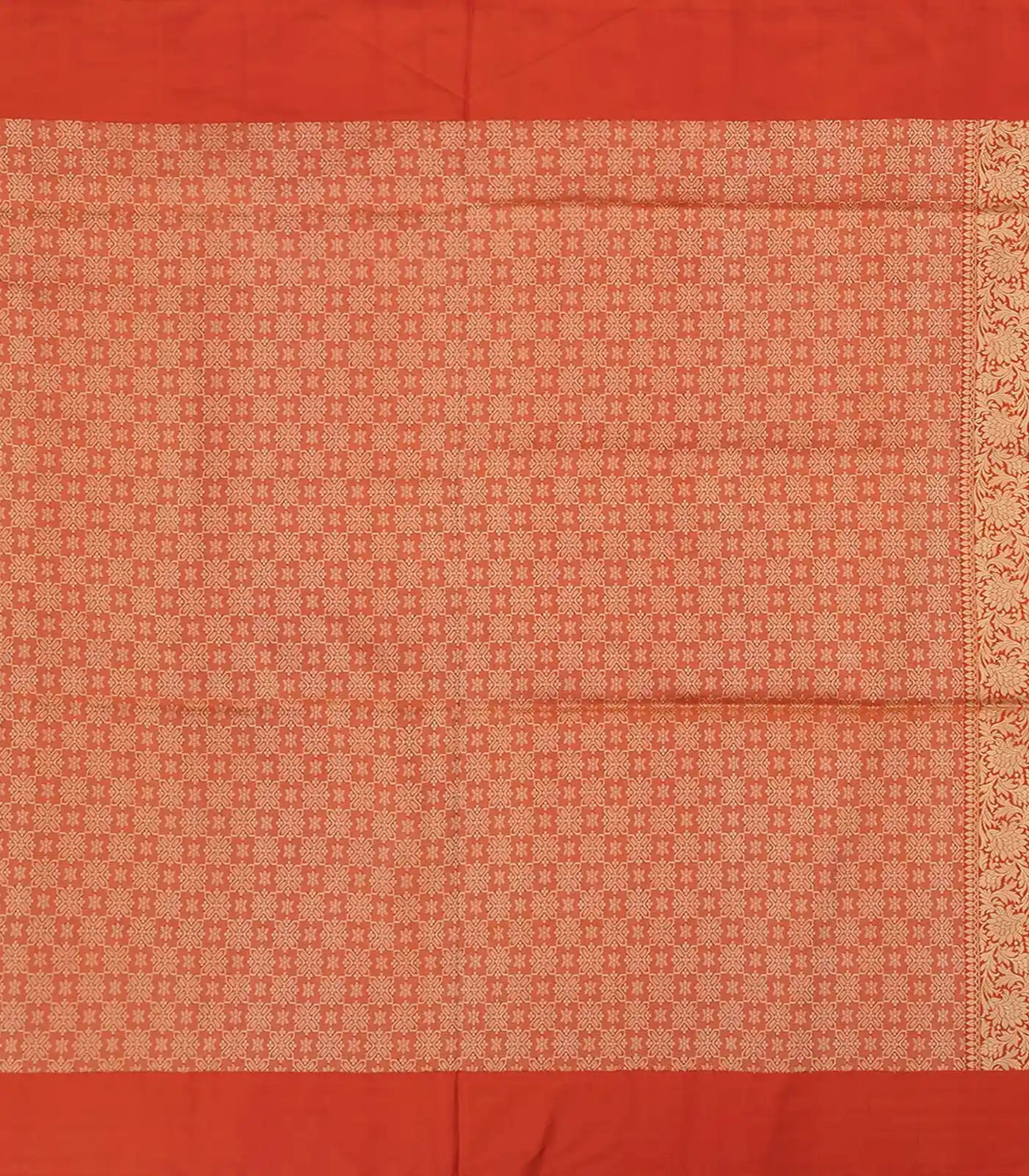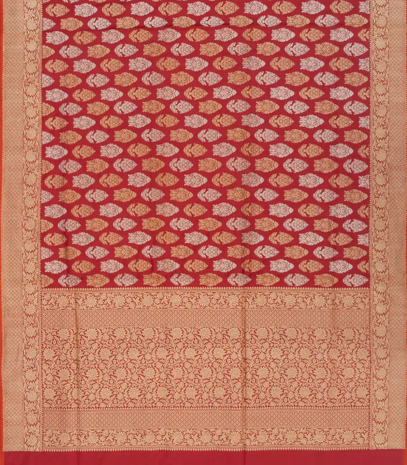 Red Handloom Banarasi Silk Saree With Floral Motifs & Vine Motifs in Border-Red