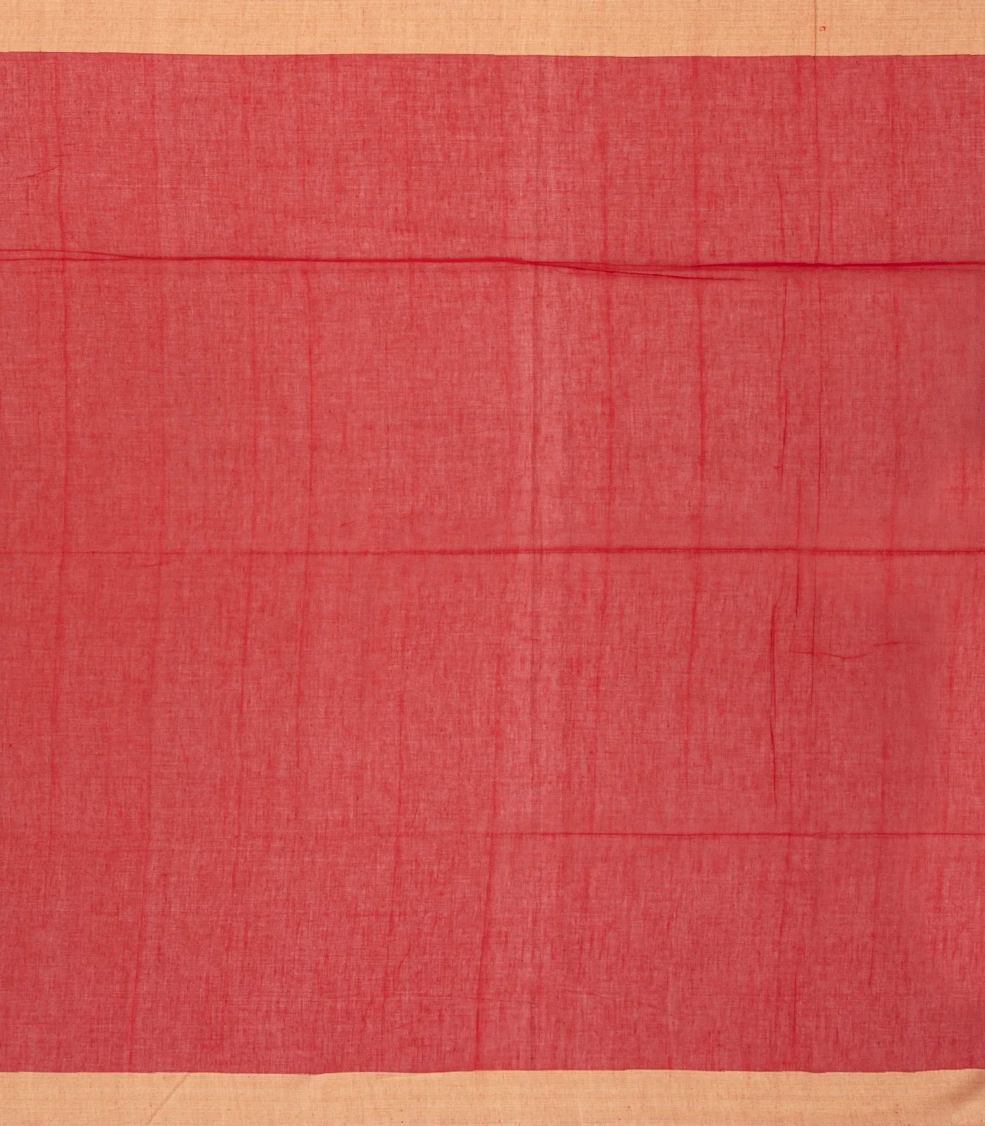 Red Handloom Bengal Cotton Saree With Contrast Temple Border-BG1347