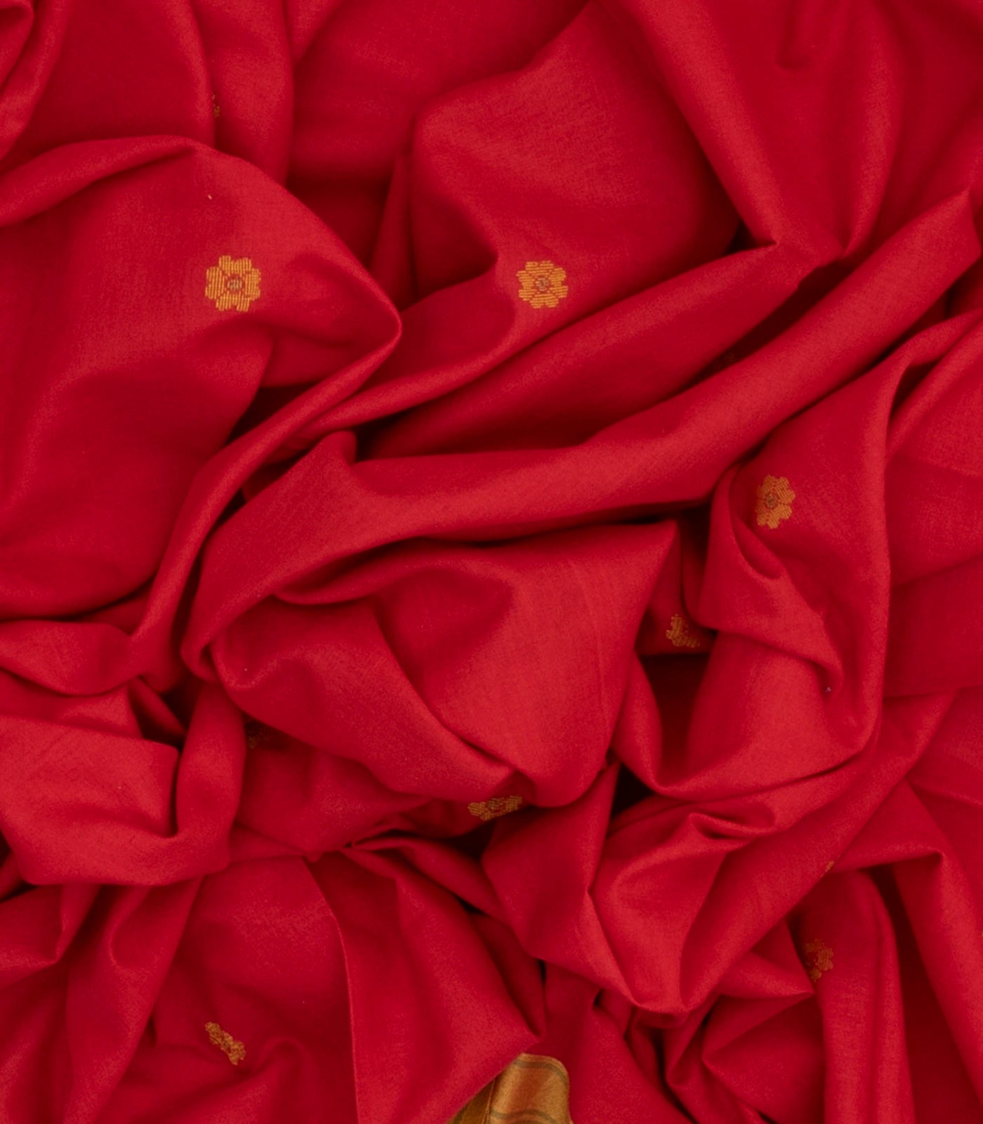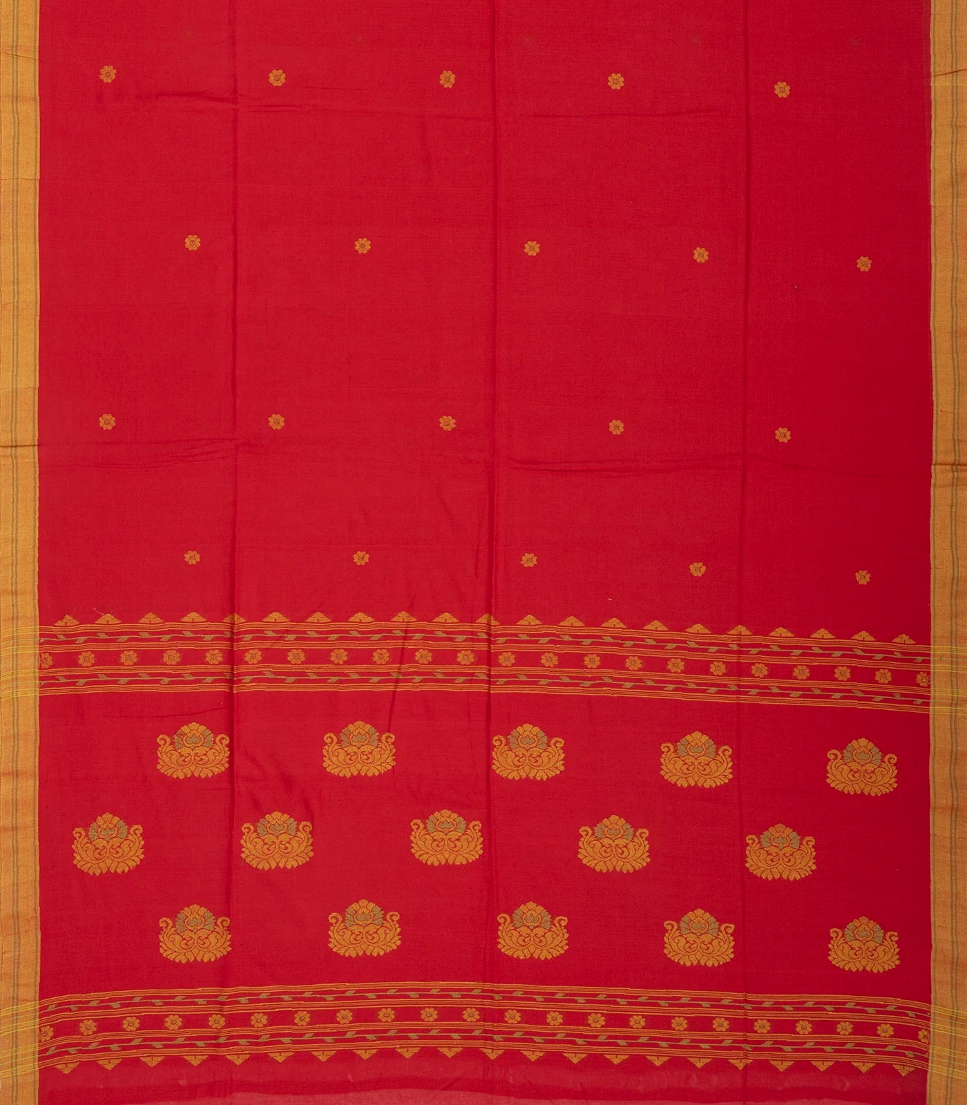 Red Handloom Bengal Cotton Saree With Kamalam Buttas-BG1248