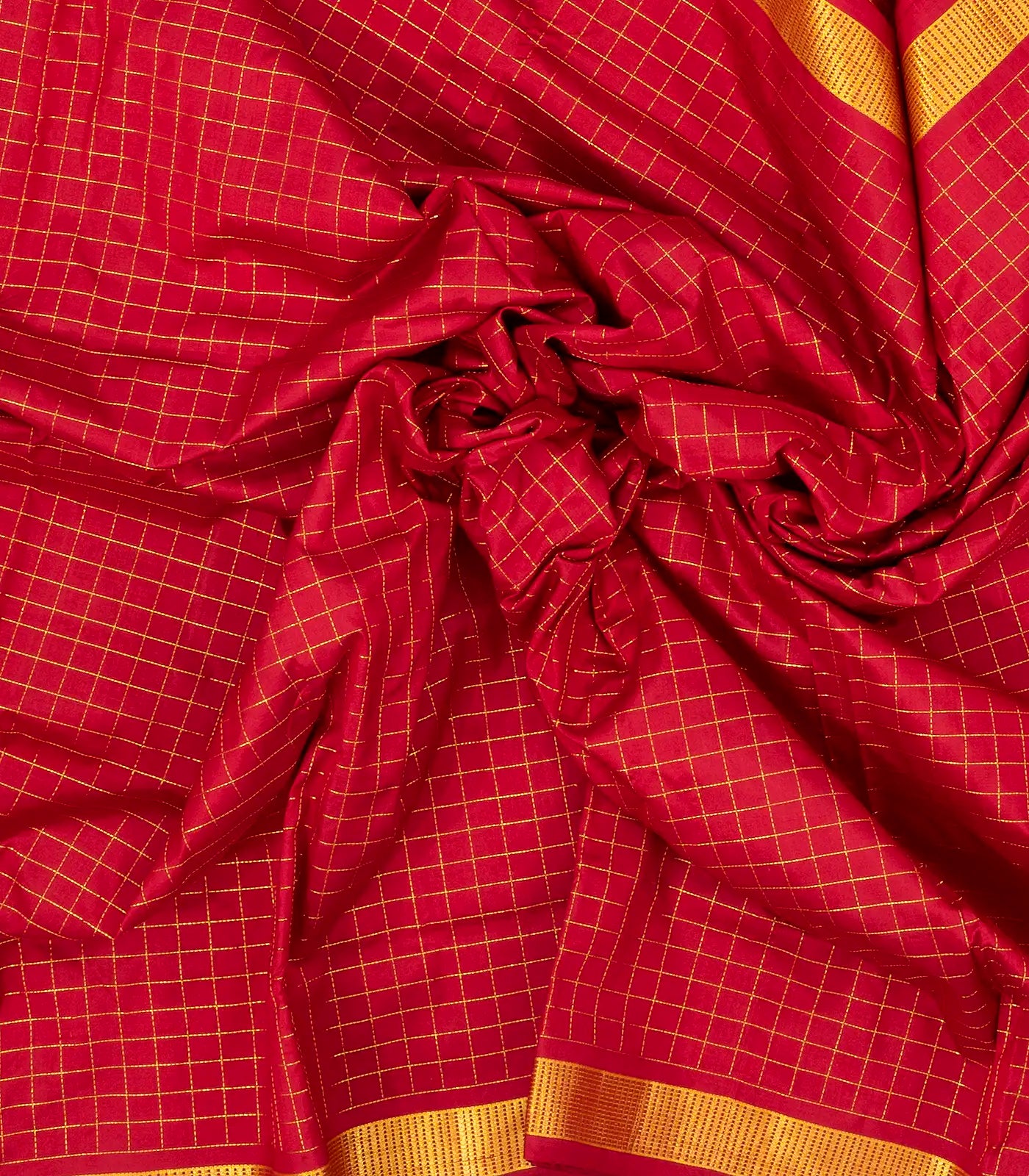 Red Handloom Kanchipuram 9 Yards Silk Saree With Zari Checks-KA13397