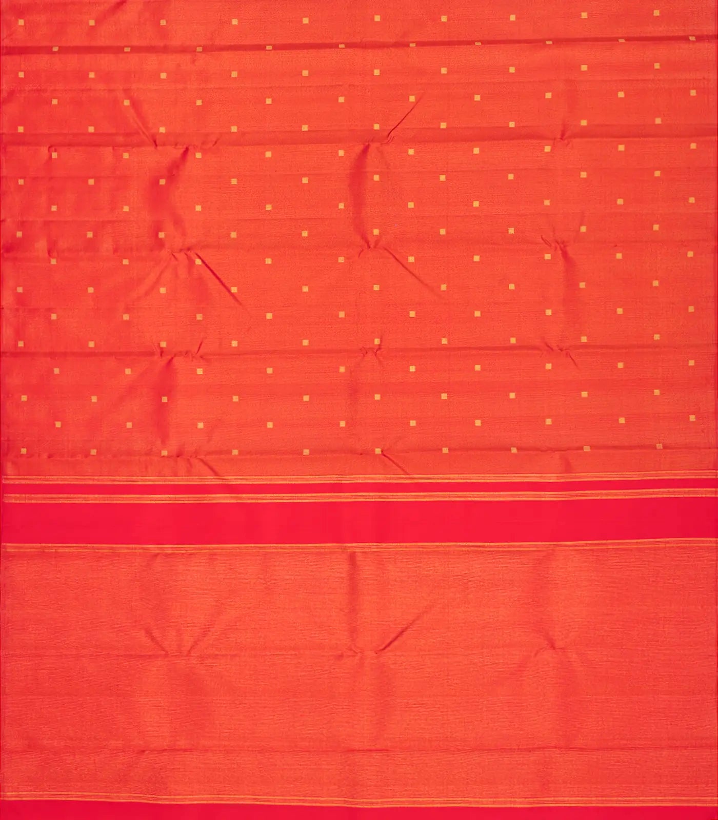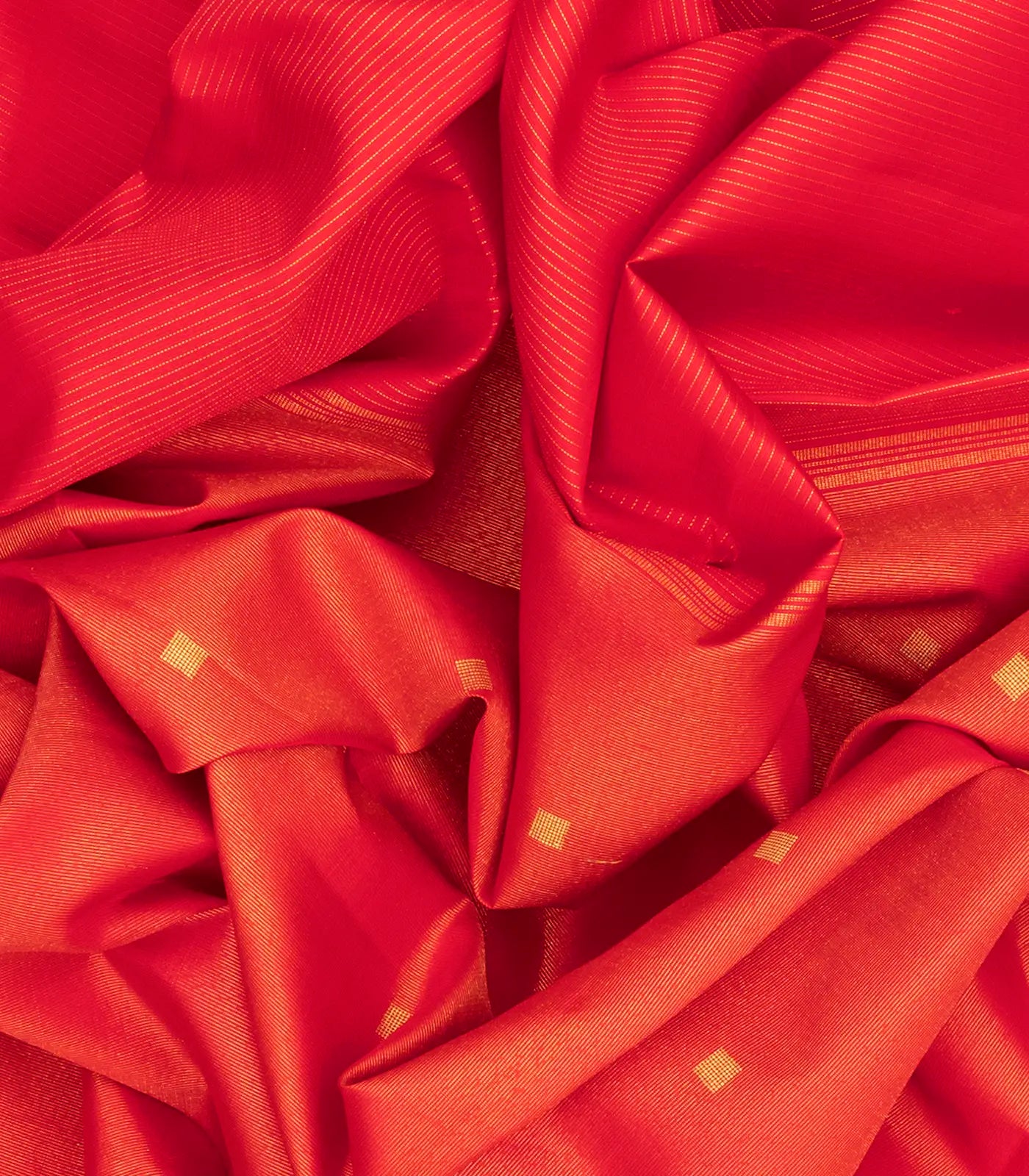 This handwoven kanchipuram partly saree is filled with square buttas & stripes in red body along with pallu