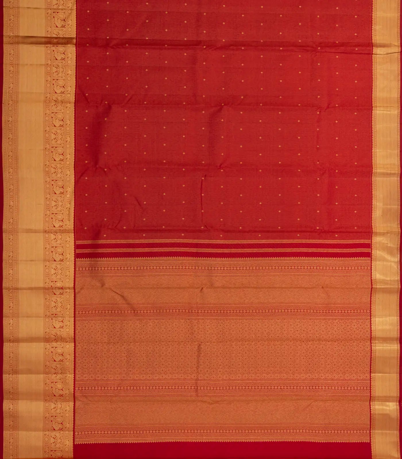 Red Handloom Kanchipuram Silk Saree With Dotted Stripes& Buttas-KA14772