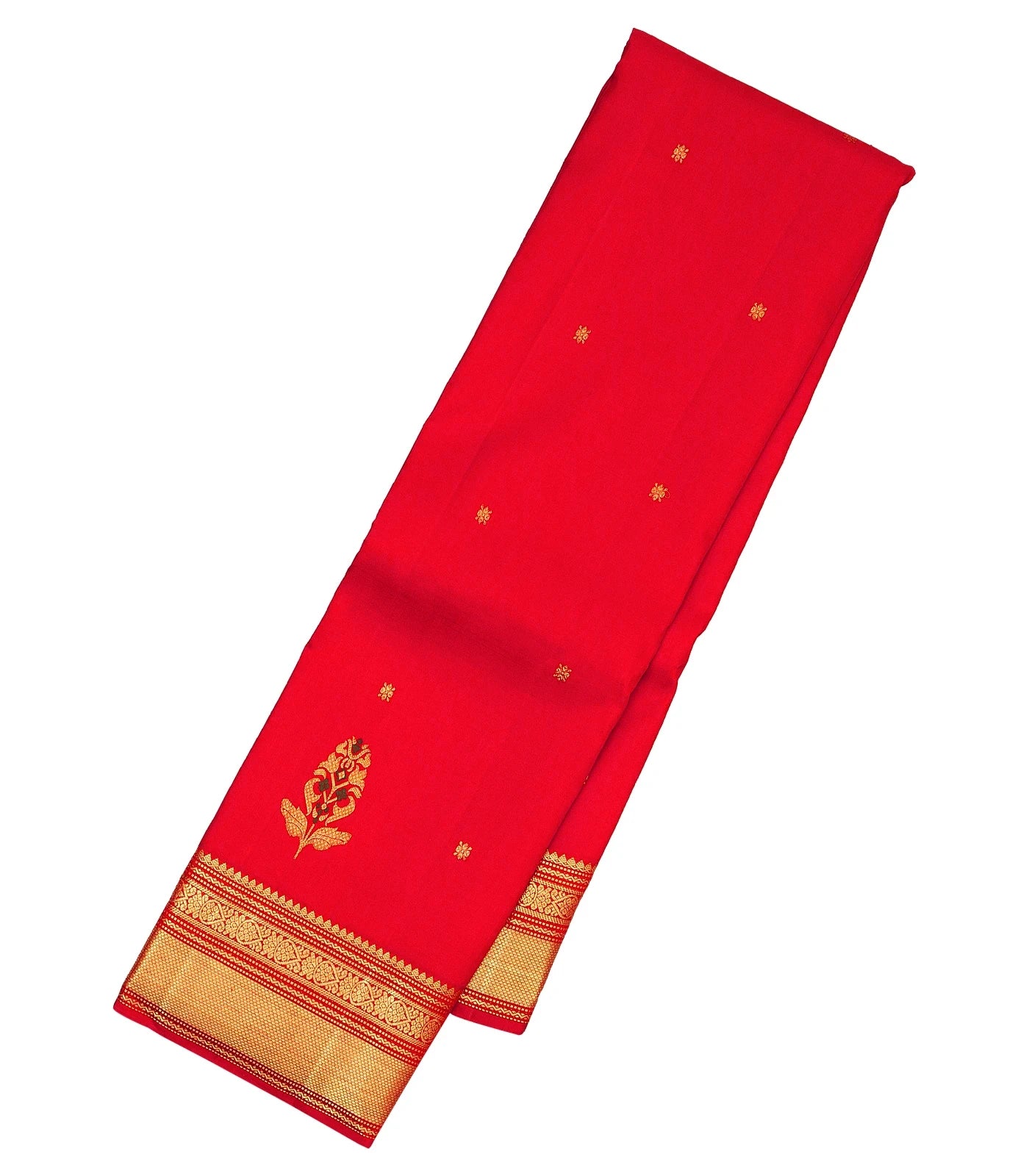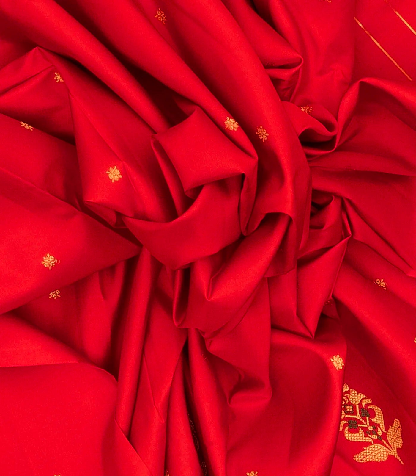 Red Handloom Kanchipuram Silk Saree With Floral Buttas-KA12338