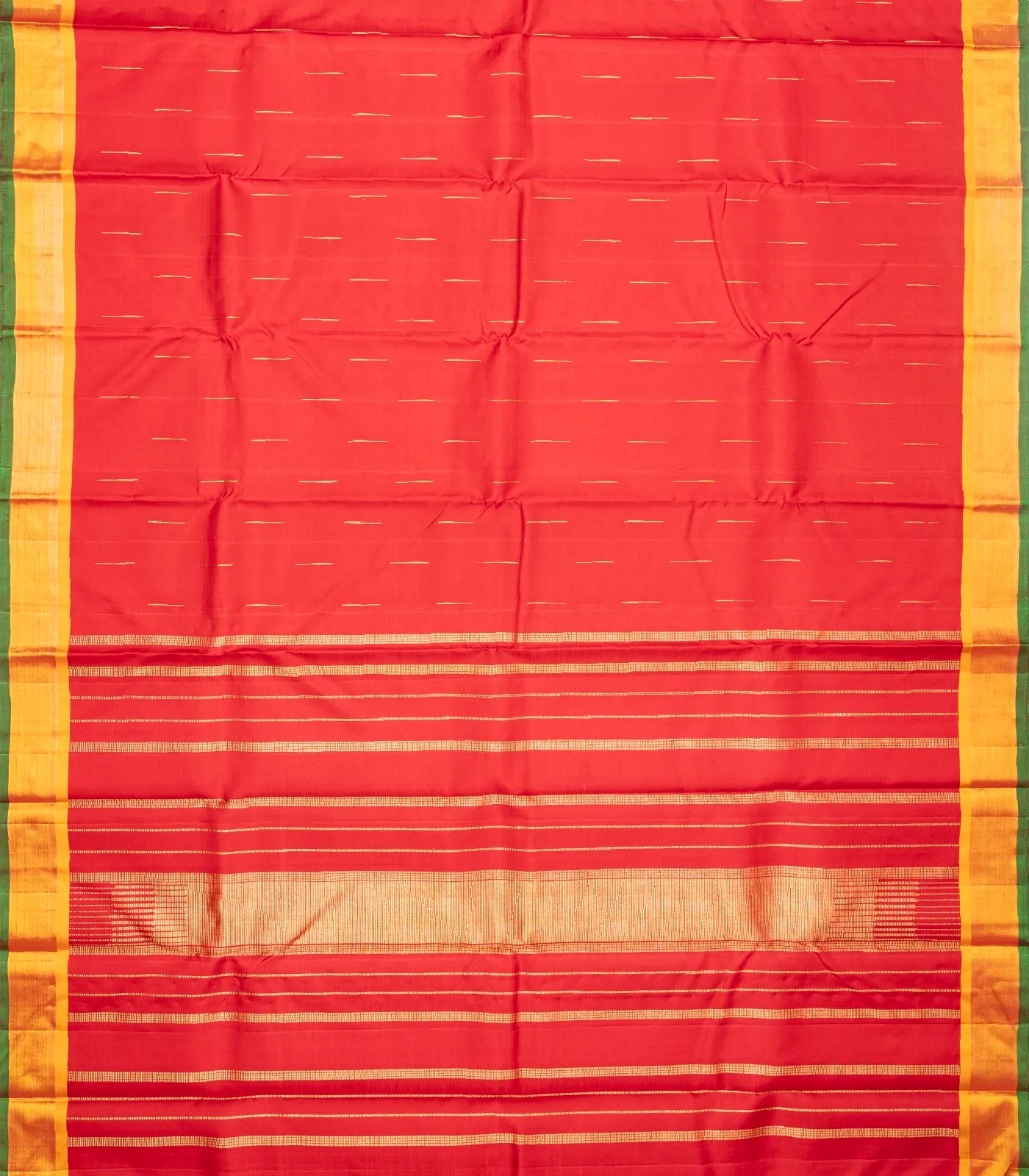 Red Handloom Kanchipuram Silk Saree With Jasmine Bud Buttas