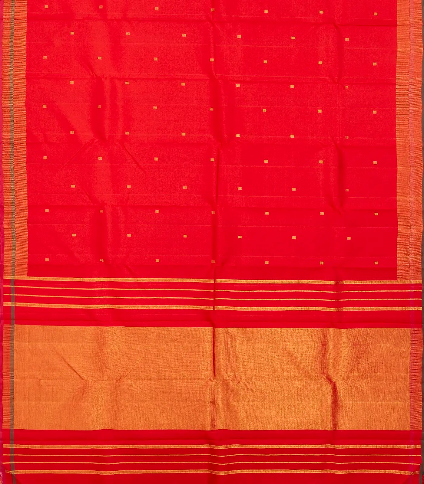 Red Handloom Kanchipuram Silk Saree With Square Buttas