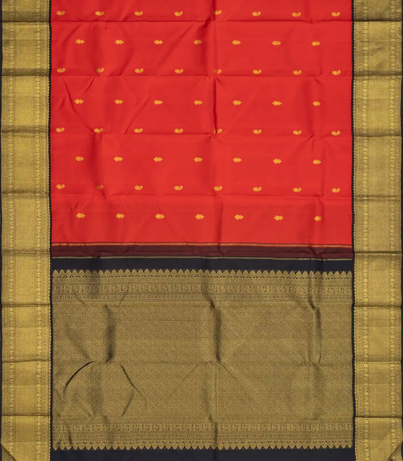 Red Handloom Korvai Kanchipuram Silk Saree With Buttas & Contrast Border-KA12903