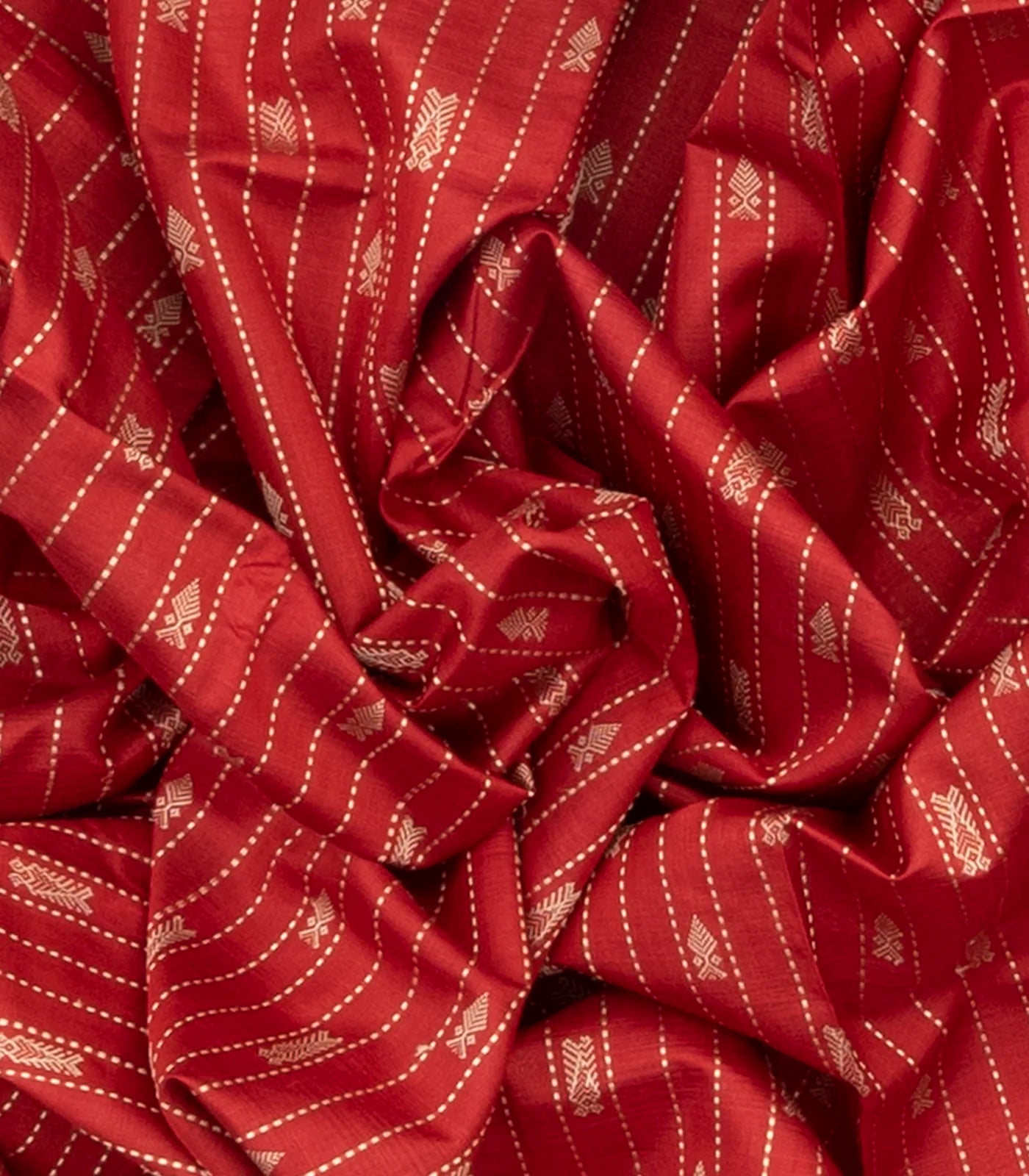 Red Handloom Orissa Silk Saree With Spearhead Motifs & Stripes-Red