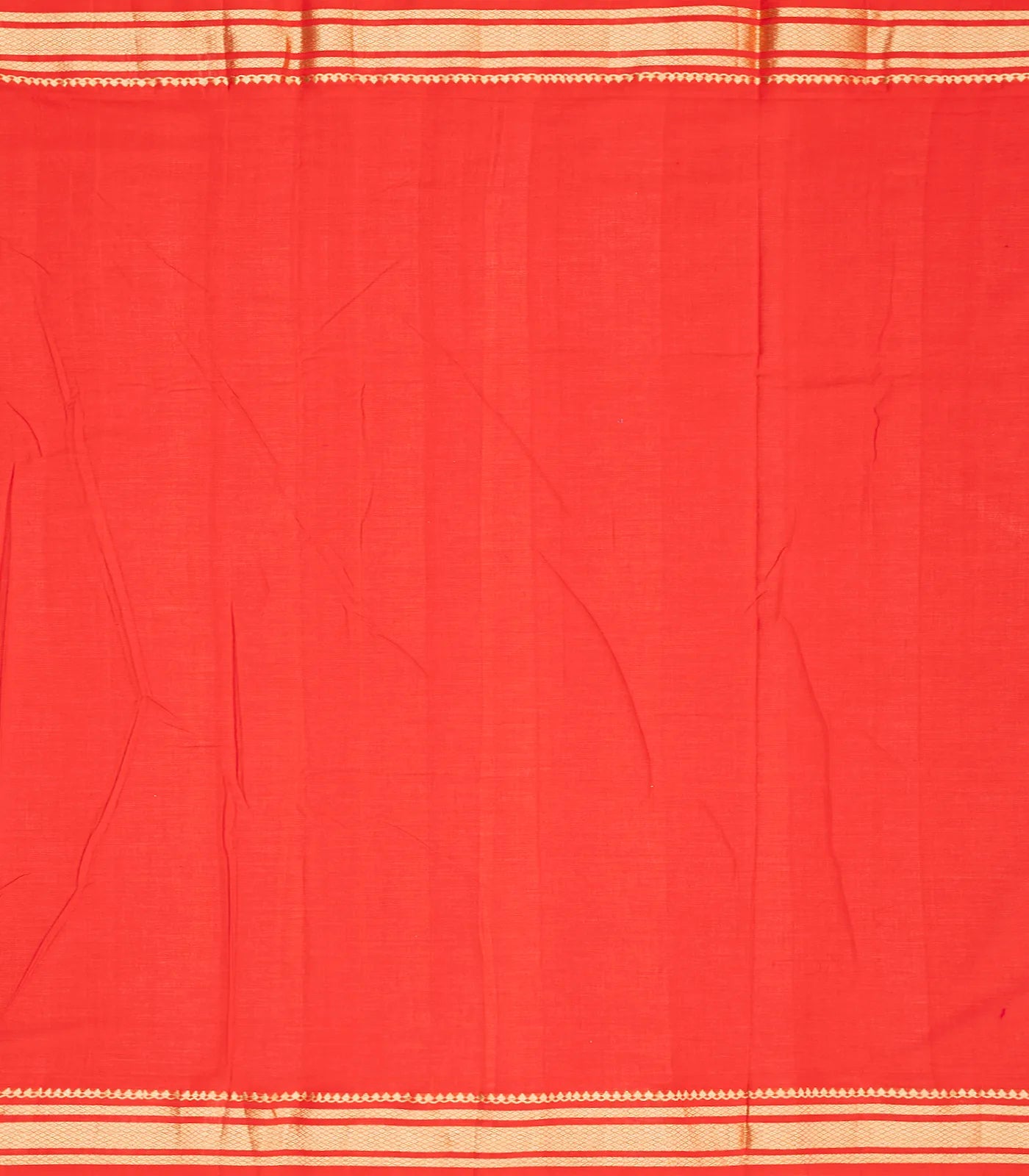 Red Handloom Paithani Cotton Saree With Mango Buttas-Red