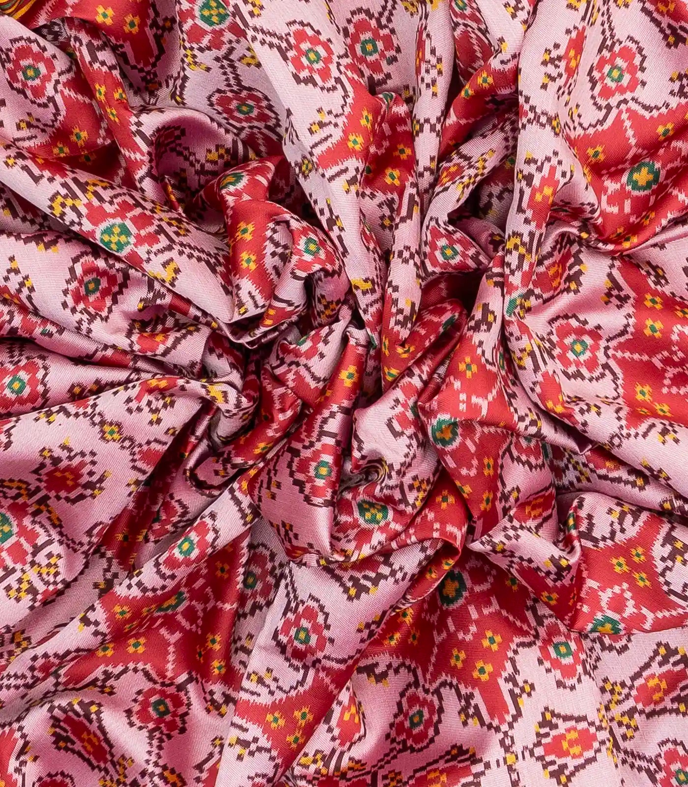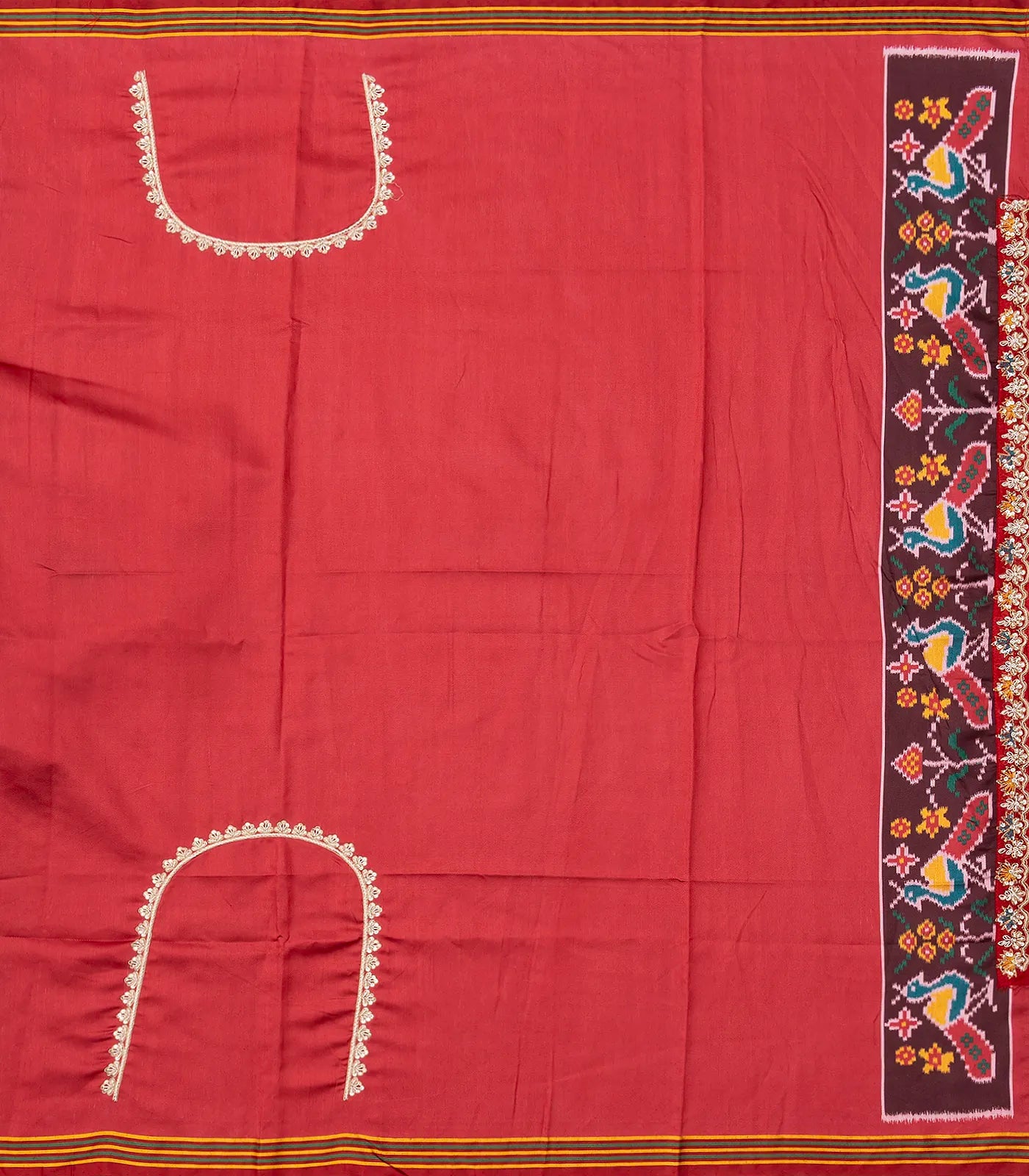 Red Woven Blended Silk Saree With Ikat Motifs & Hand Embroidered Selvage-EN1704