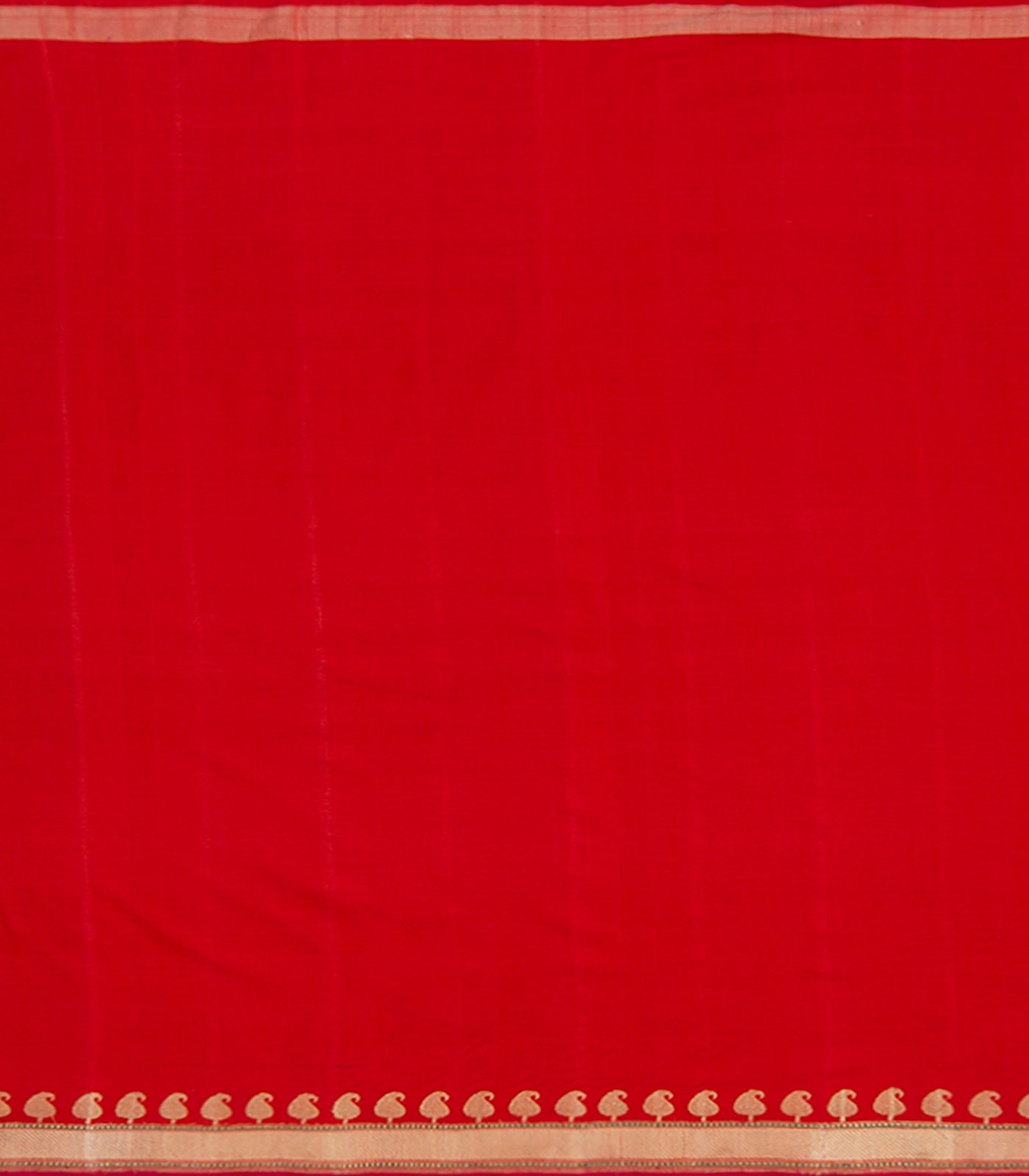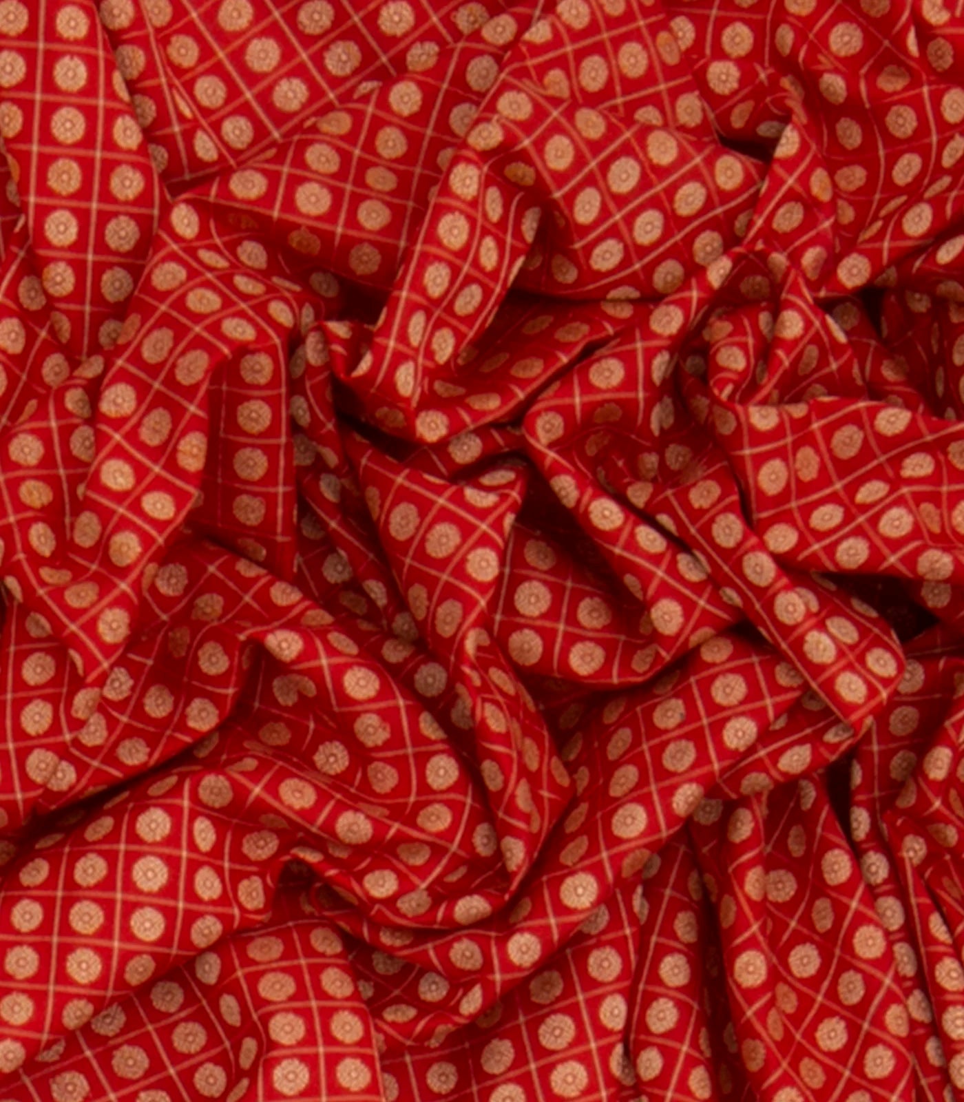 Red Handwoven Benarasi Jamdhani Saree With Chakaram Motifs in Checks With Mango Motifs in Pallu-Red