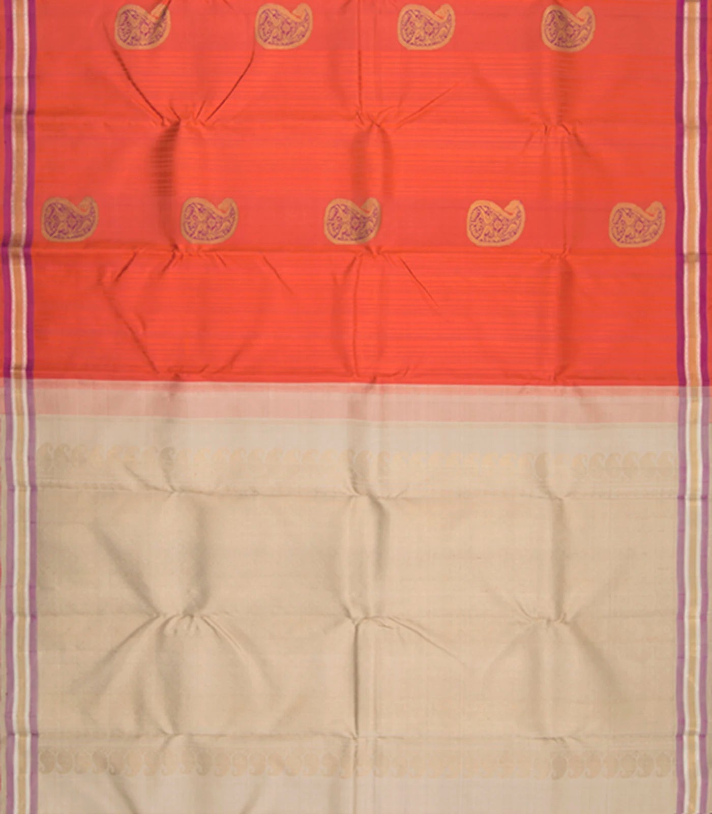 Orange Handwoven Kanchipuram Korvai Silk Saree