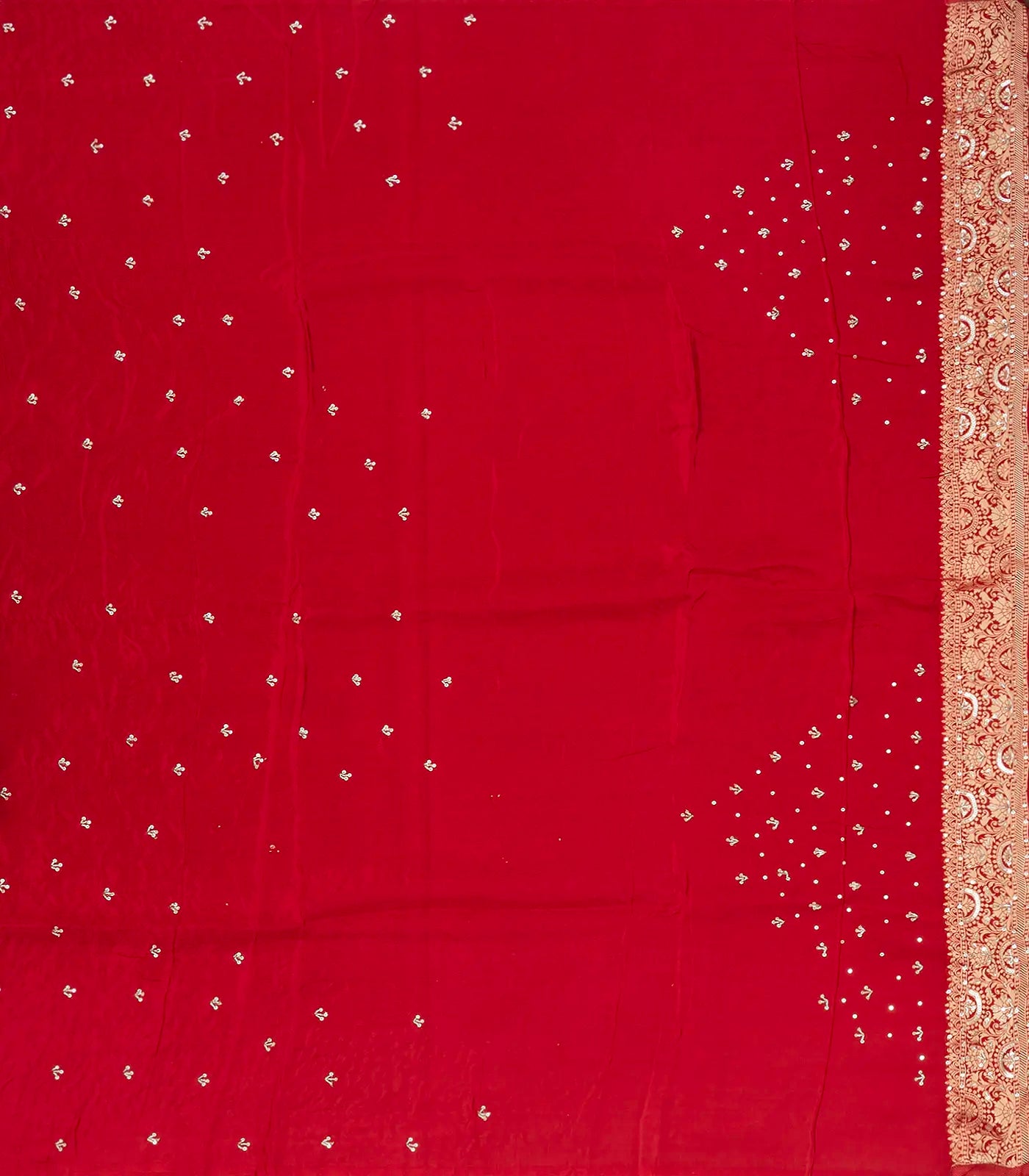 Red Woven Crepe Saree With Brocaded & Embroidery Floral Motifs-EN1680