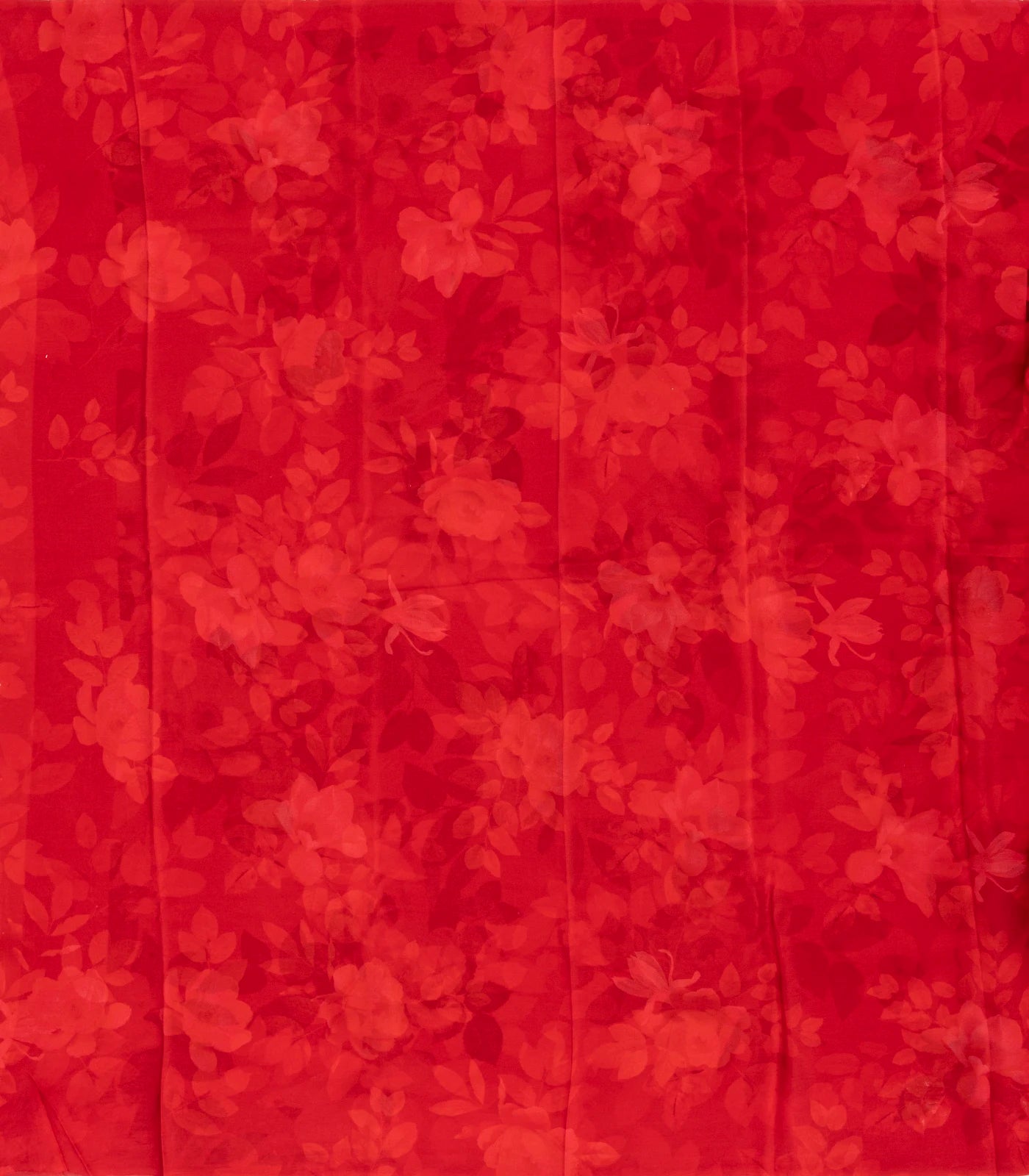 Red Woven Crepe Silk Saree With Printed Floral Motifs-PS0520