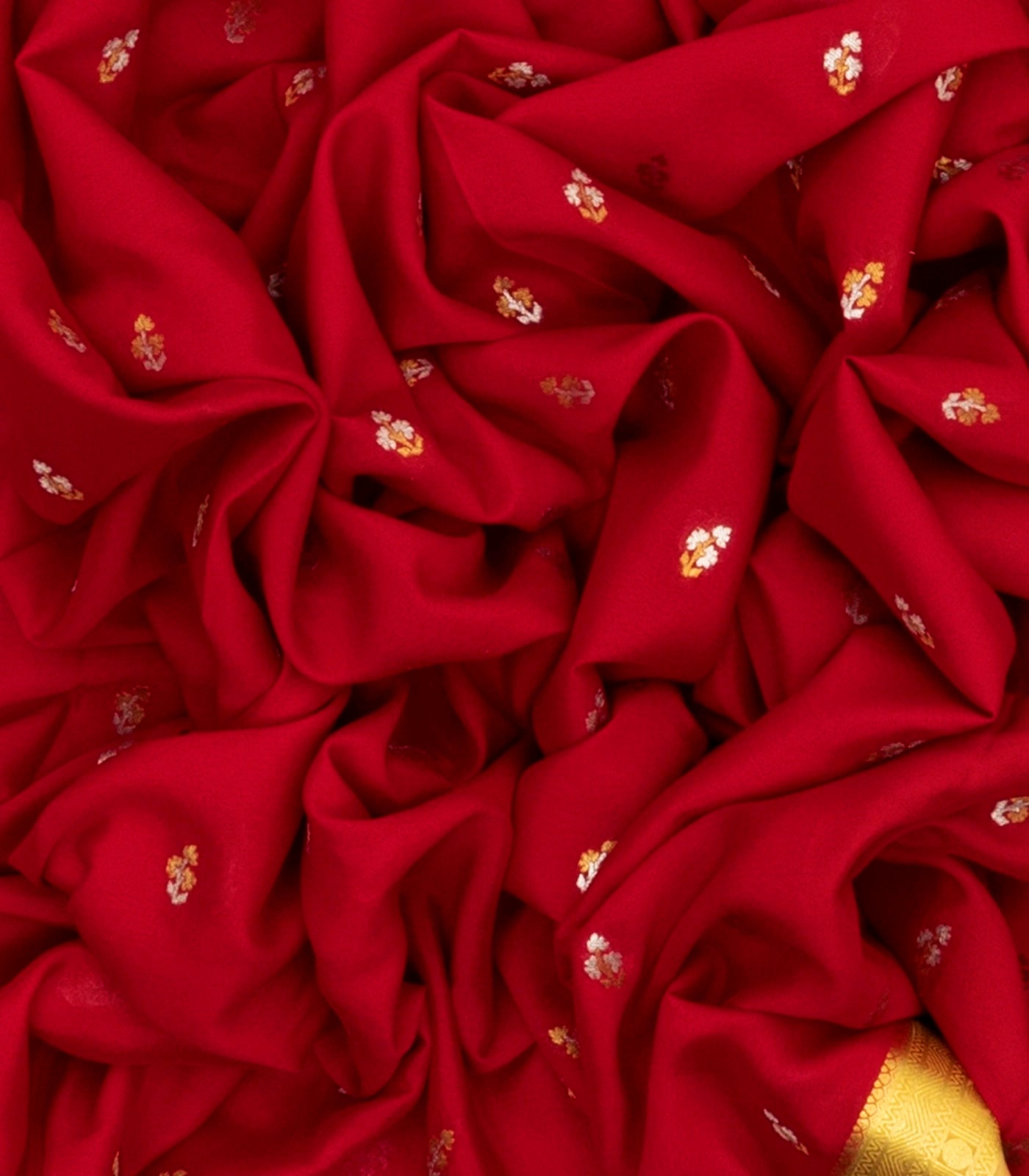 This woven mysore silk saree is filled with floral buttas in red body along with contrast zari border and pallu