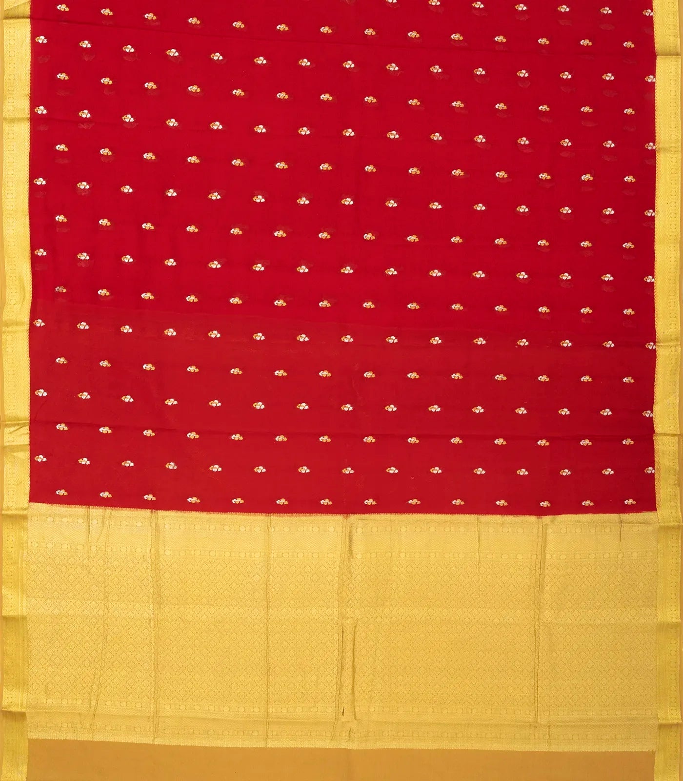 Red Woven Mysore Silk Saree With Floral Buttas