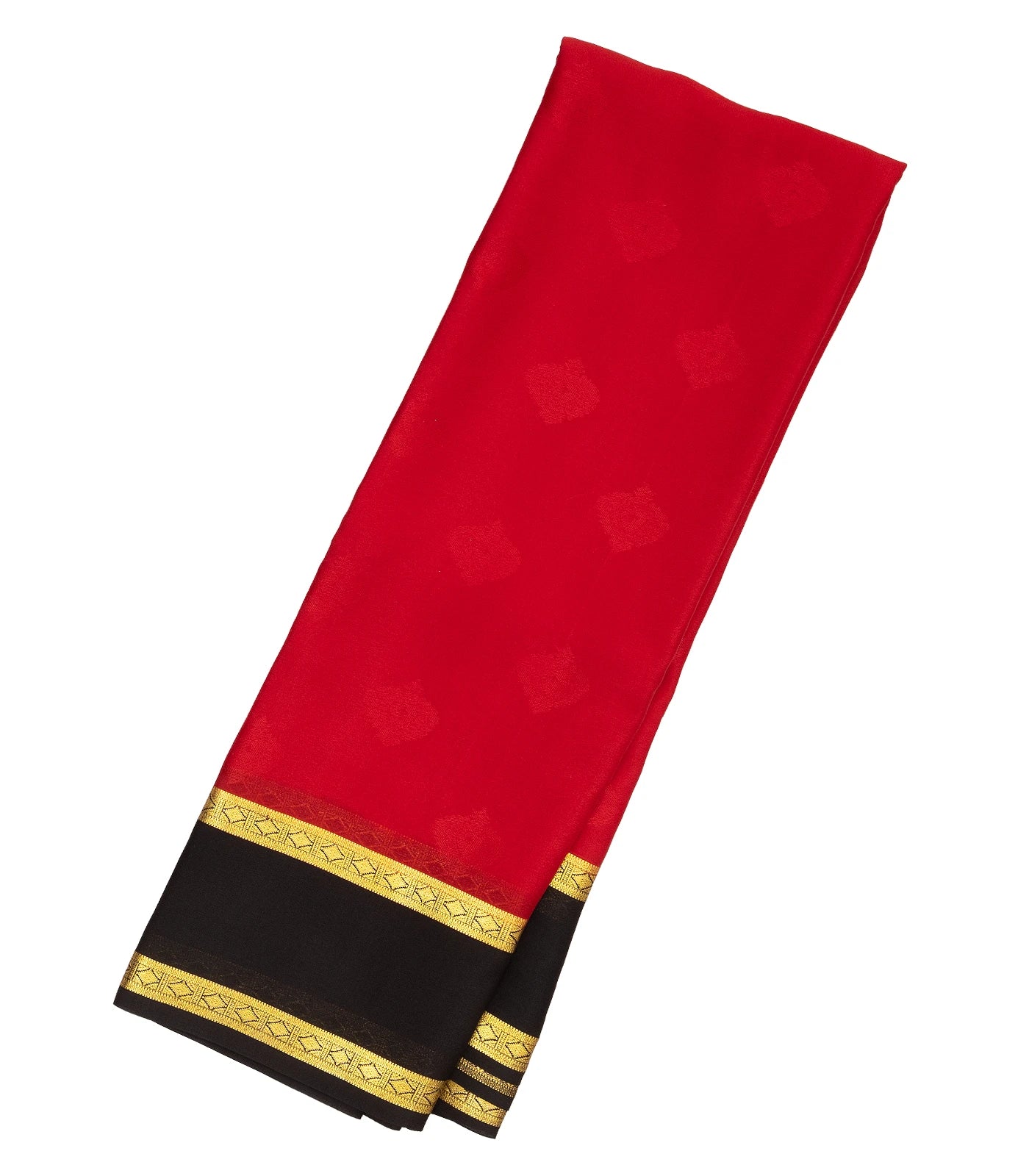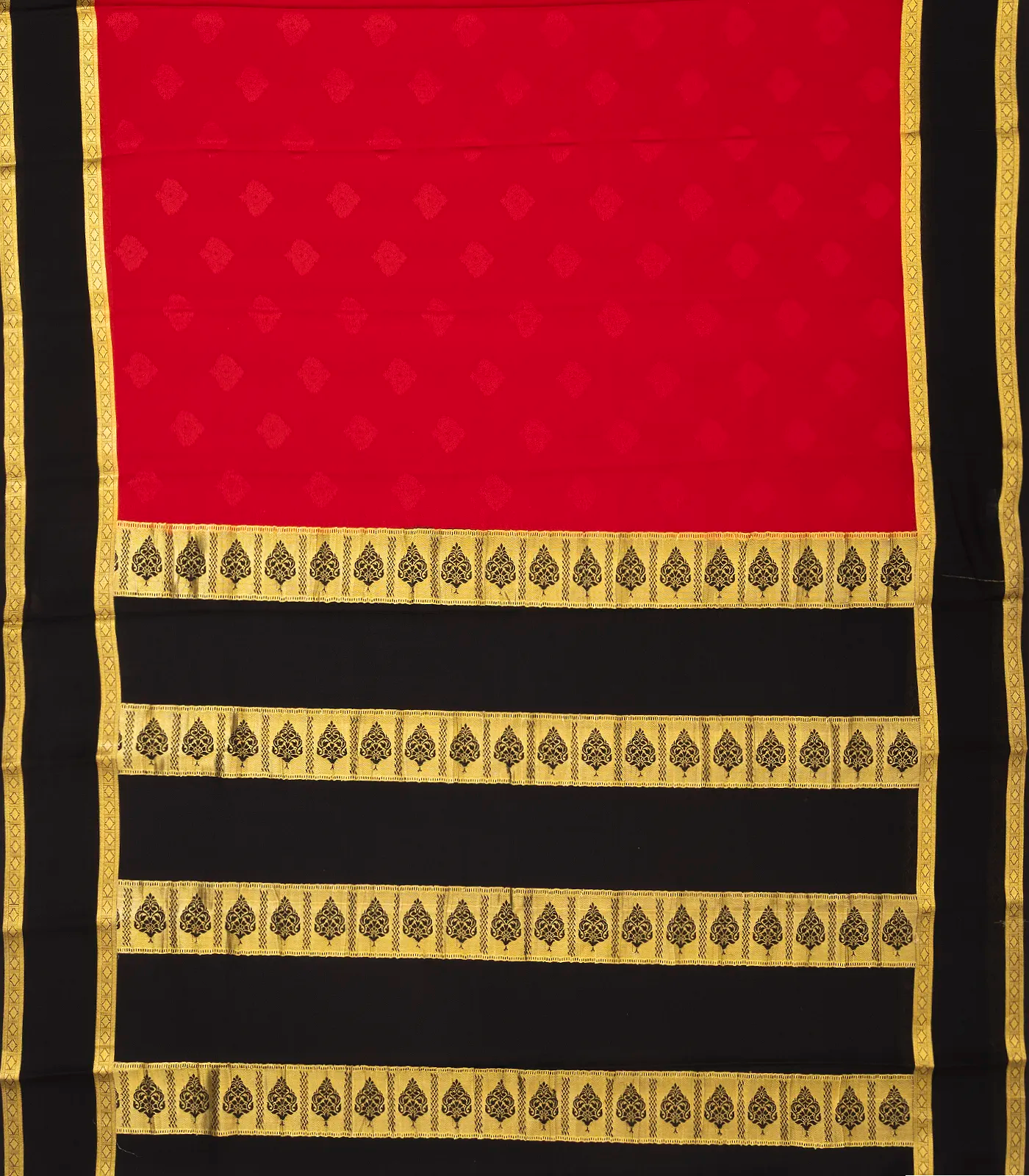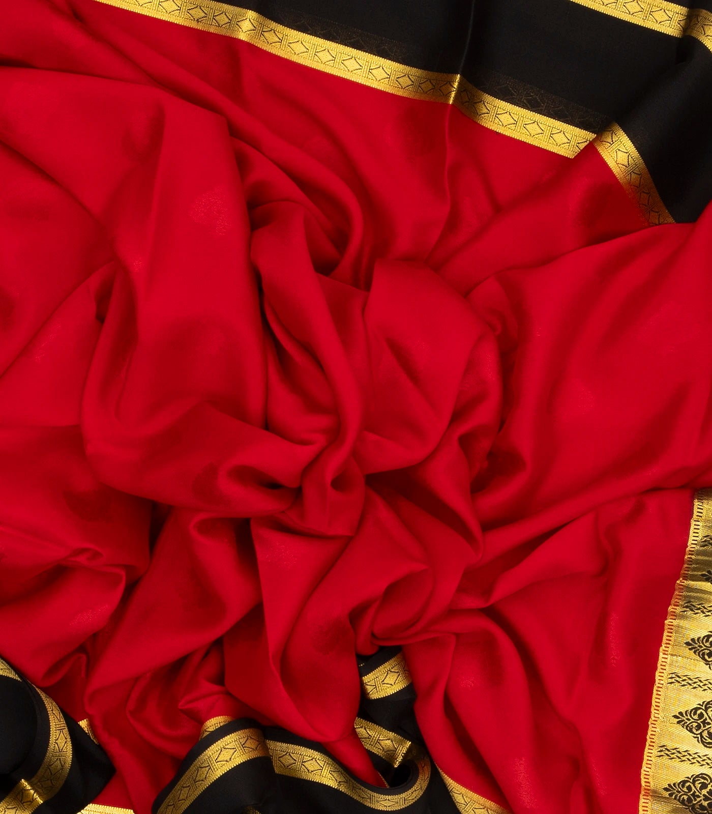 Red Woven Mysore Silk Saree With Floral Motifs & Contrast Black Border-MS3037