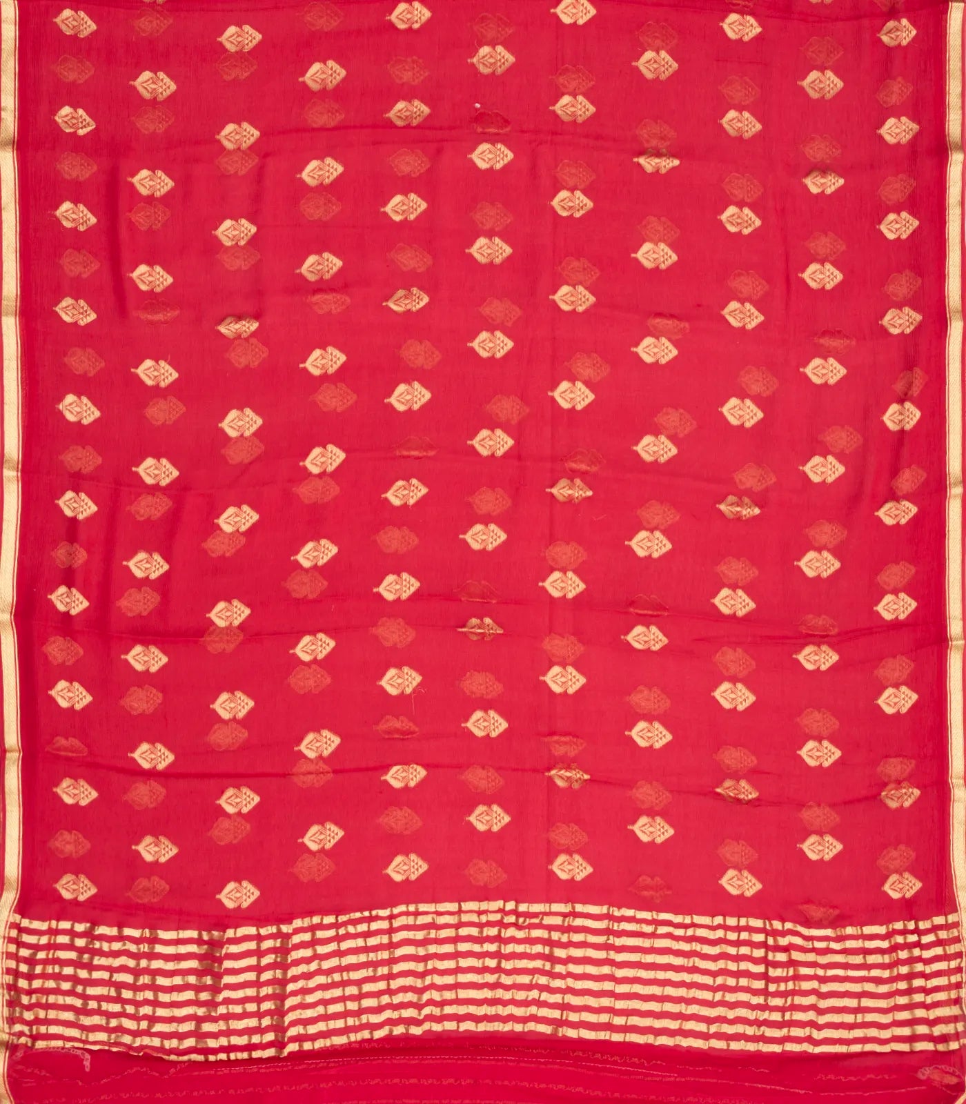 Red Woven Mysore Silk Saree With Floral Zari Buttas-MS3074