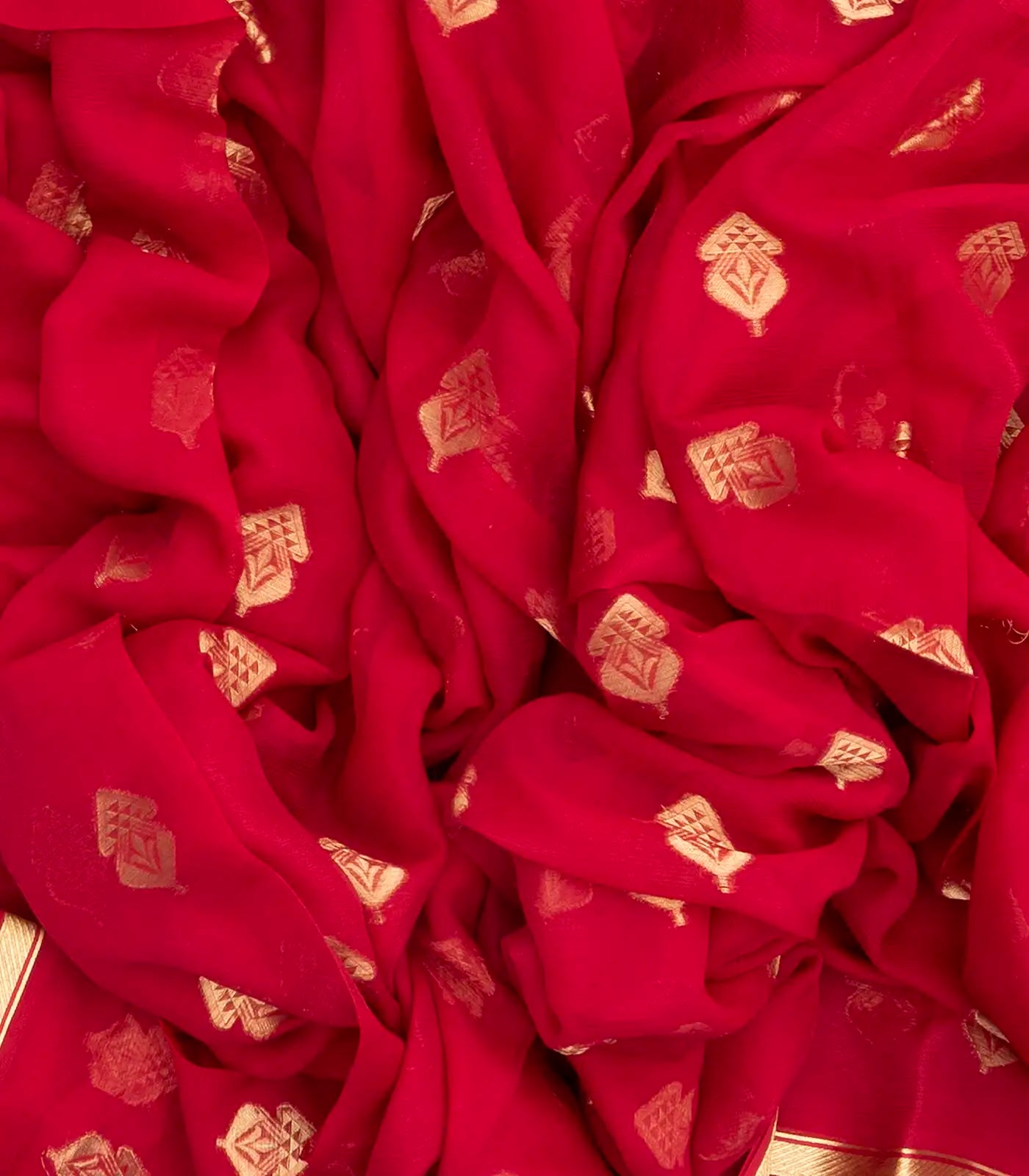 This woven mysore crepe silk saree is filled with floral zari buttas in red body along with pallu
