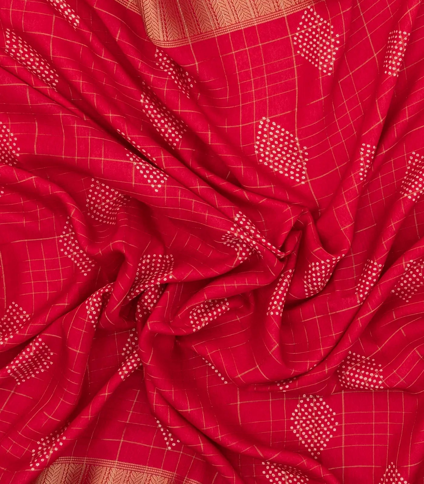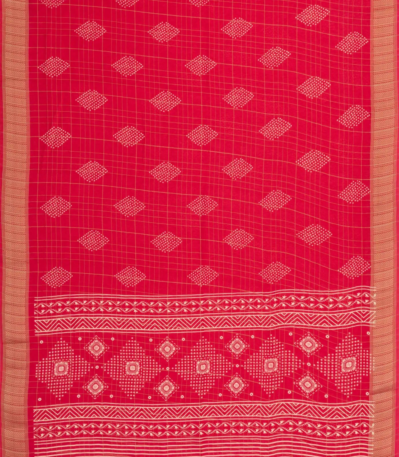 Red Woven Synthetic Chiffon Saree With Printed DIamond Motifs-BL4911