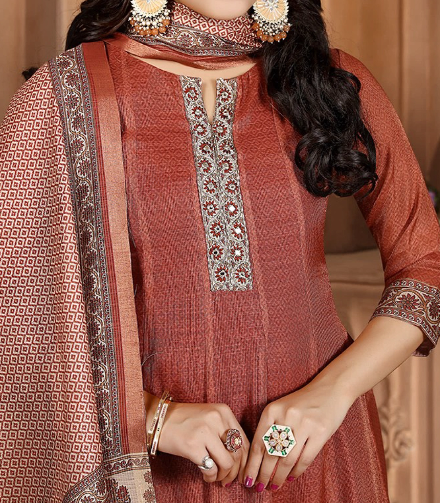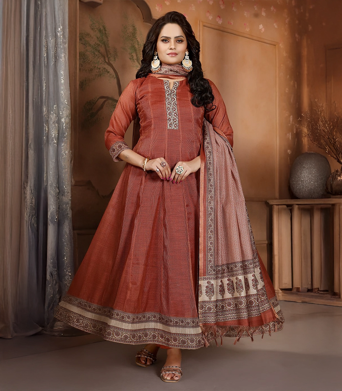 Rust Brown Casual Anarkali Set: RC5523