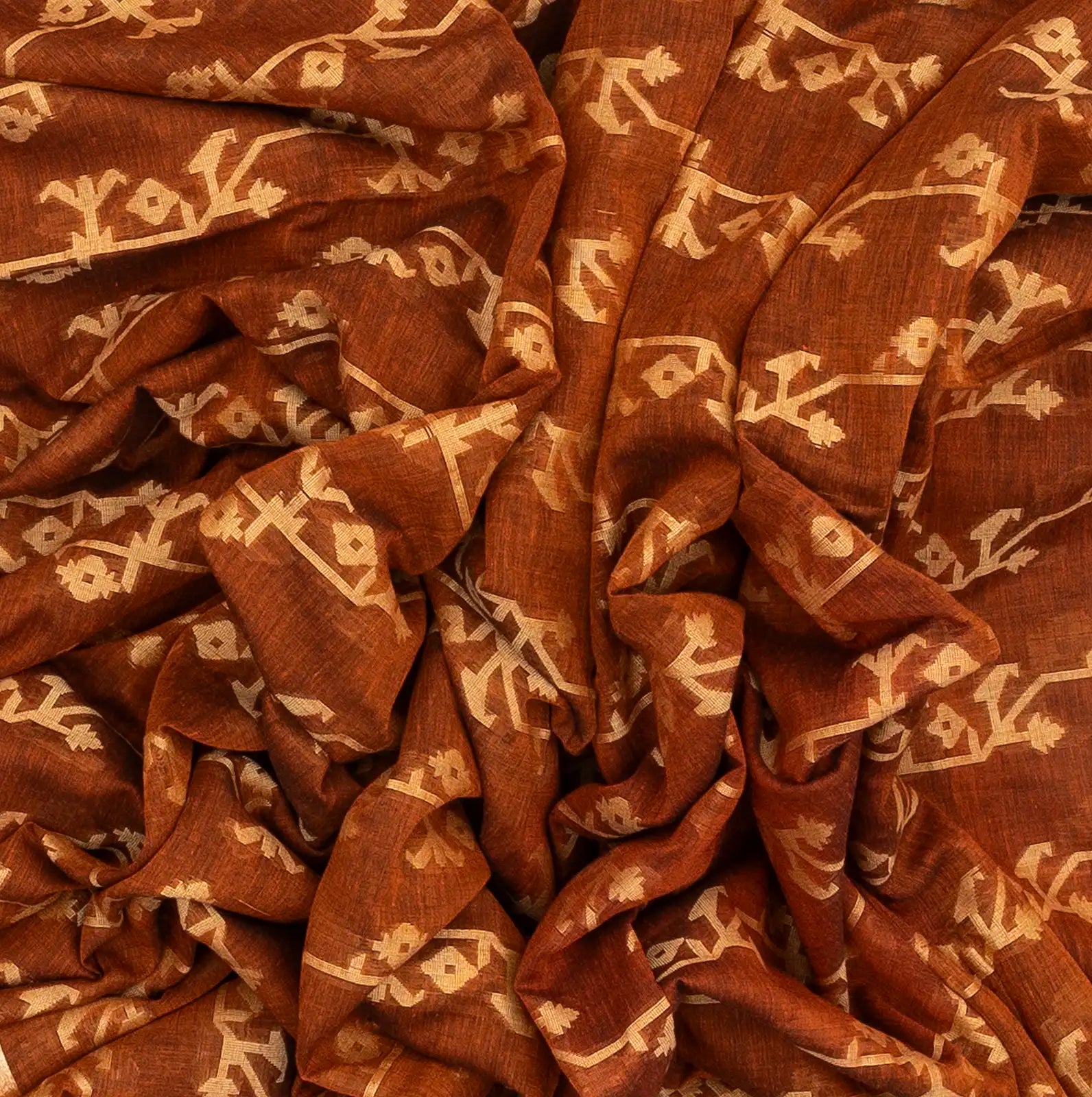 Rust Handloom Bengal Cotton Saree With Geometric Floral Motifs