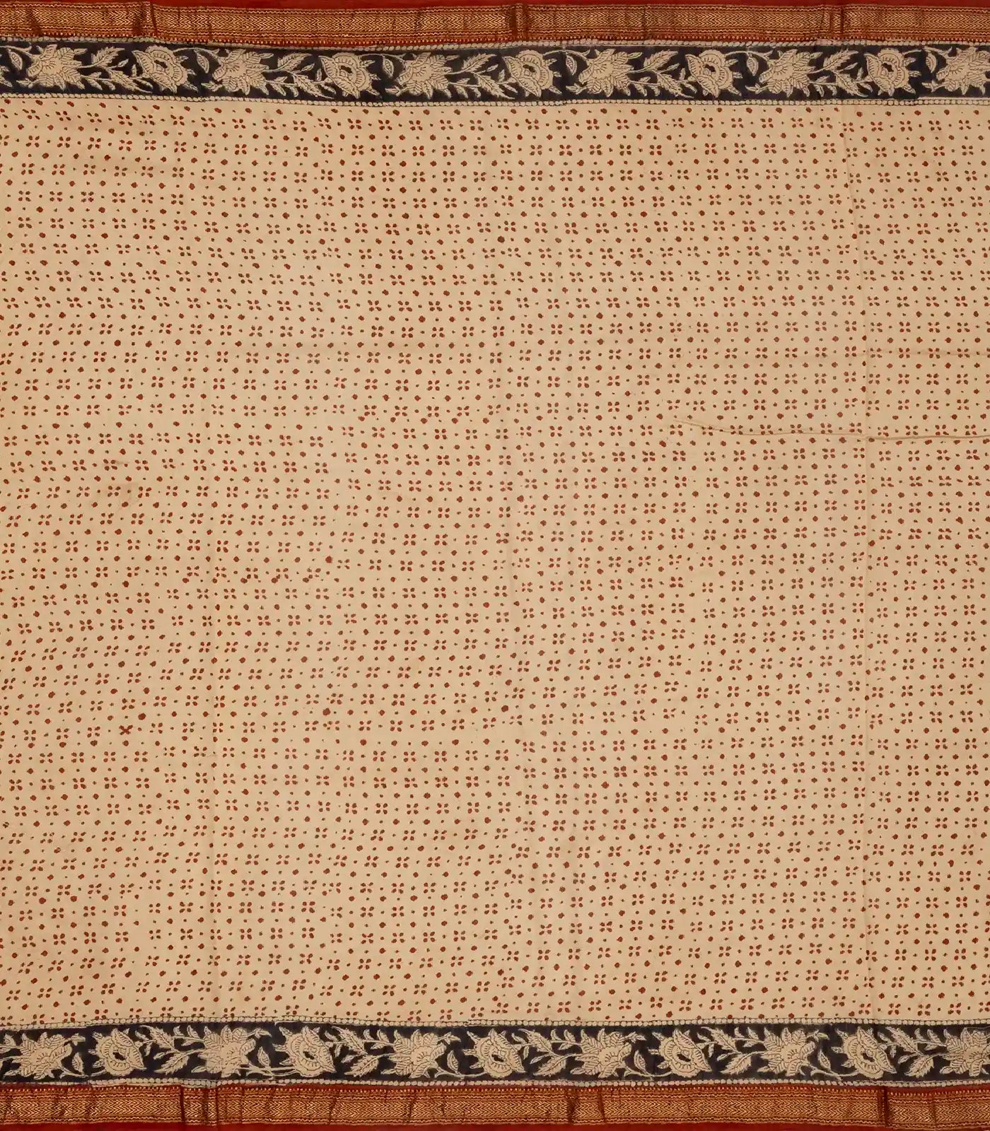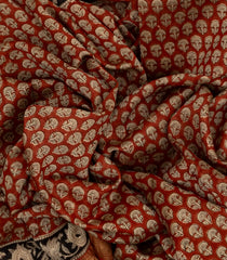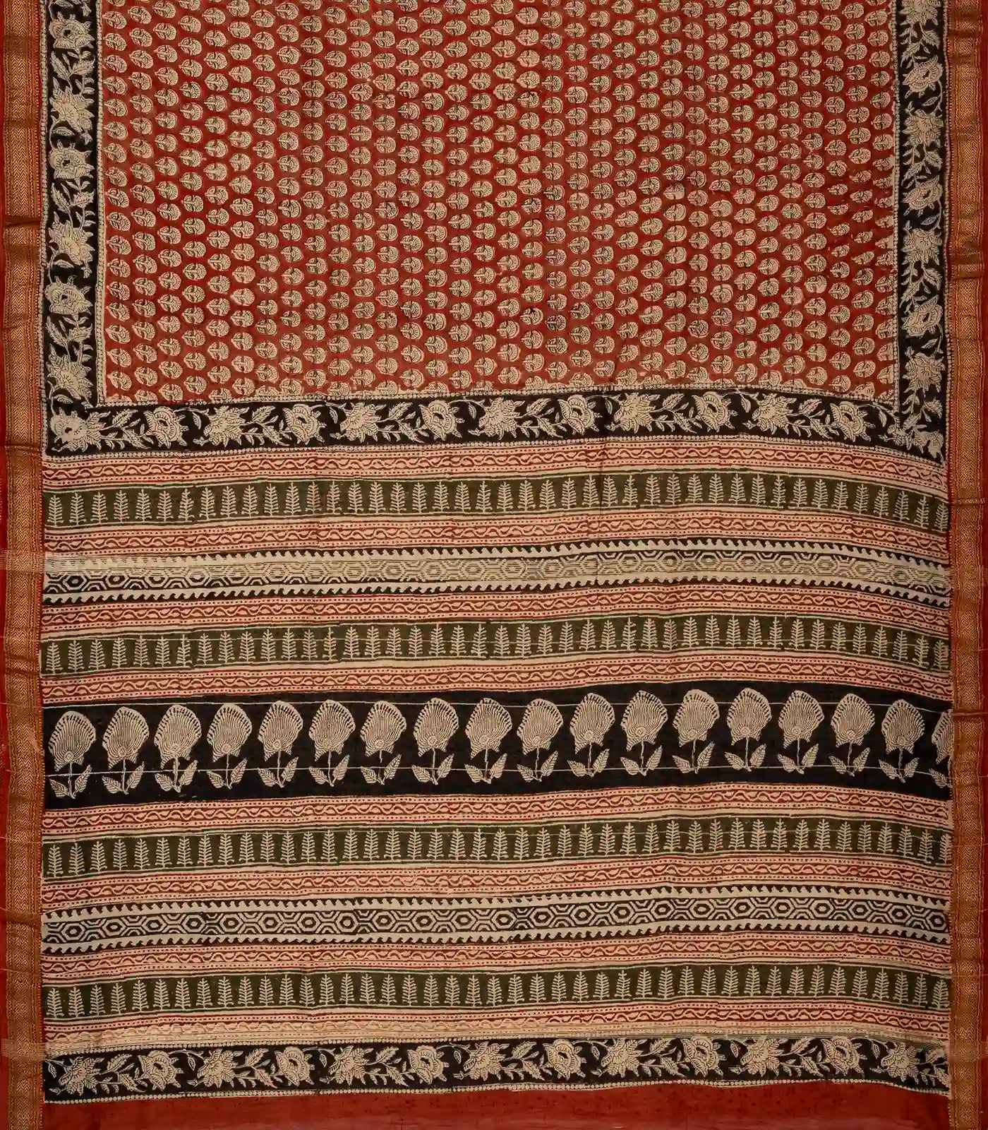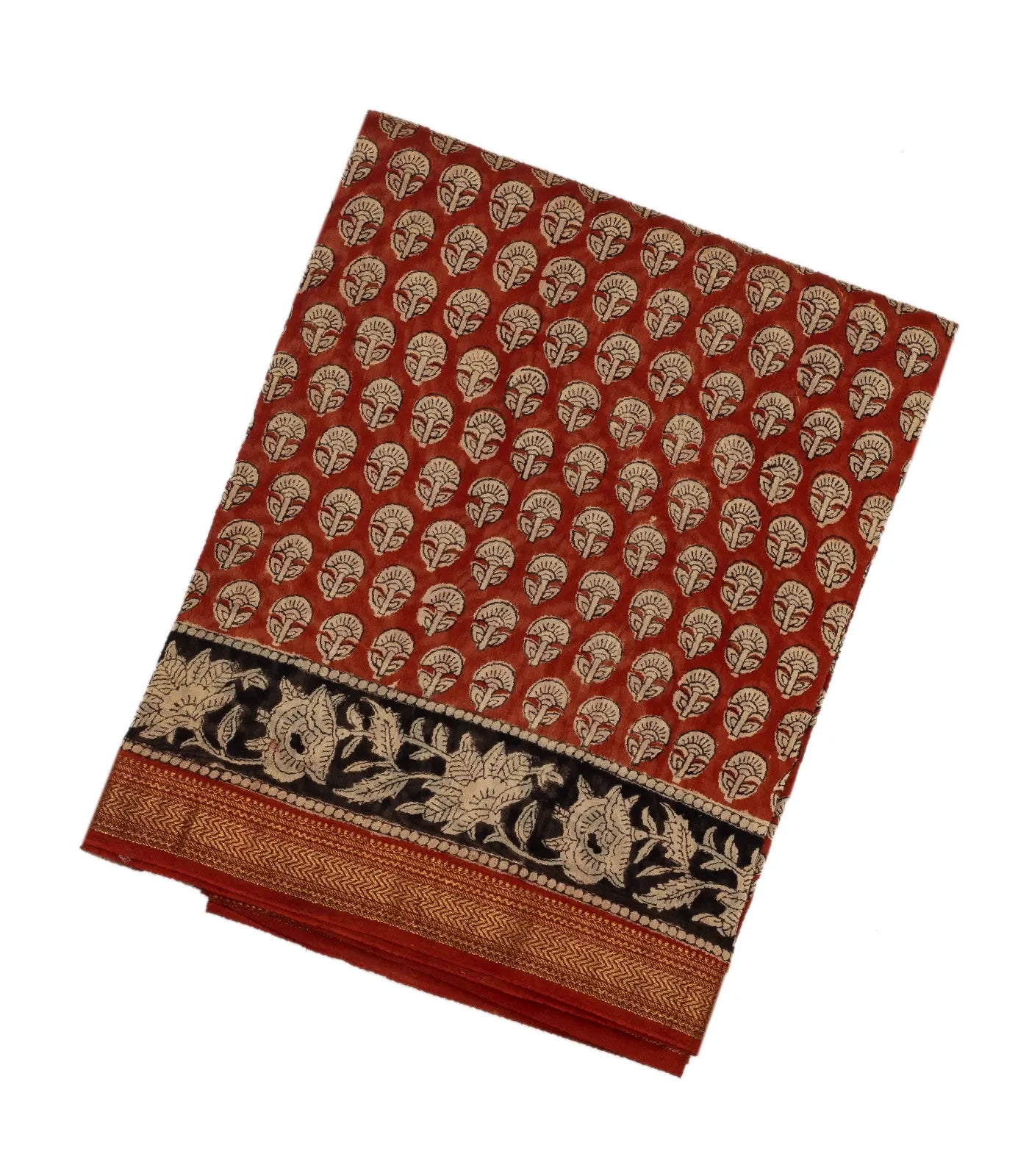 Rust Handloom Chanderi Cotton Saree With Printed Floral Motifs