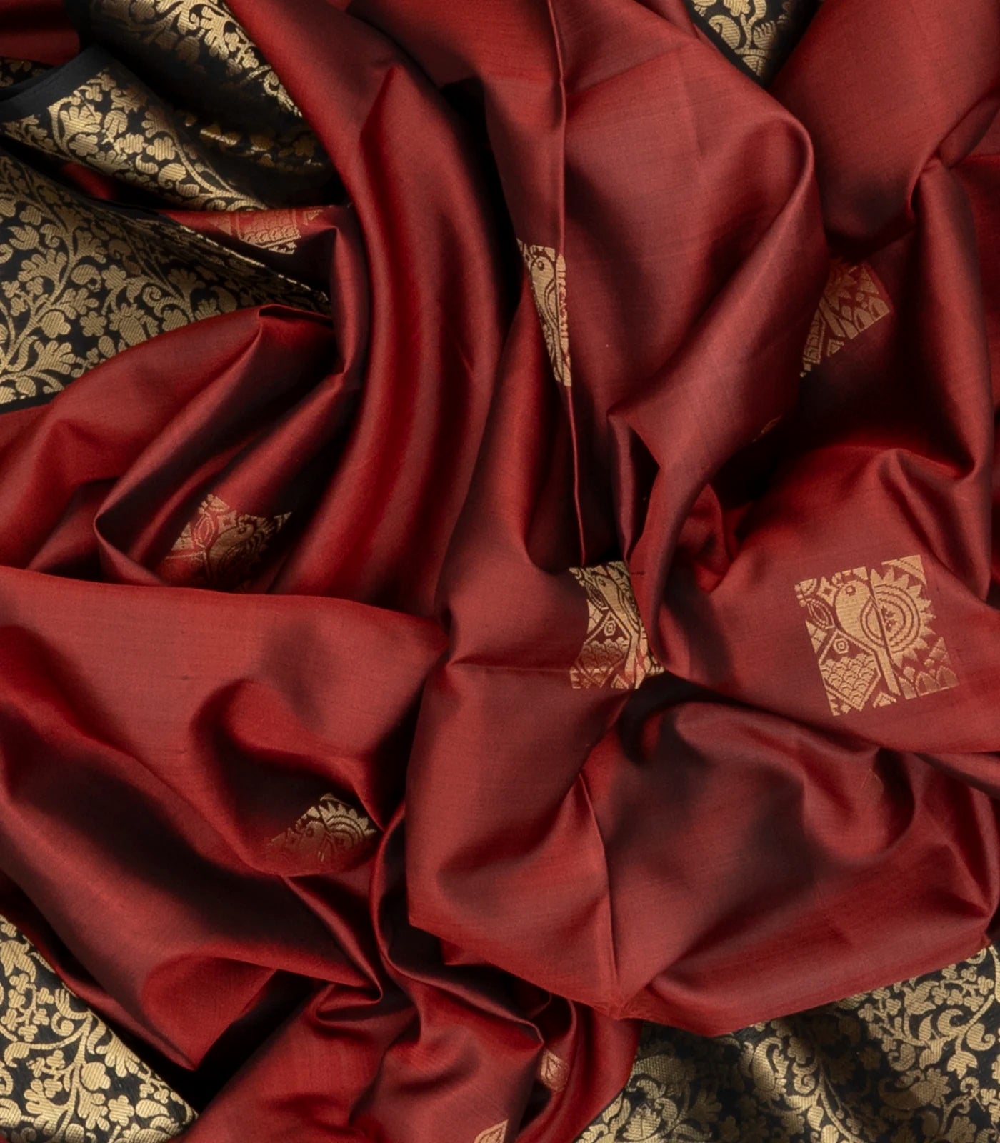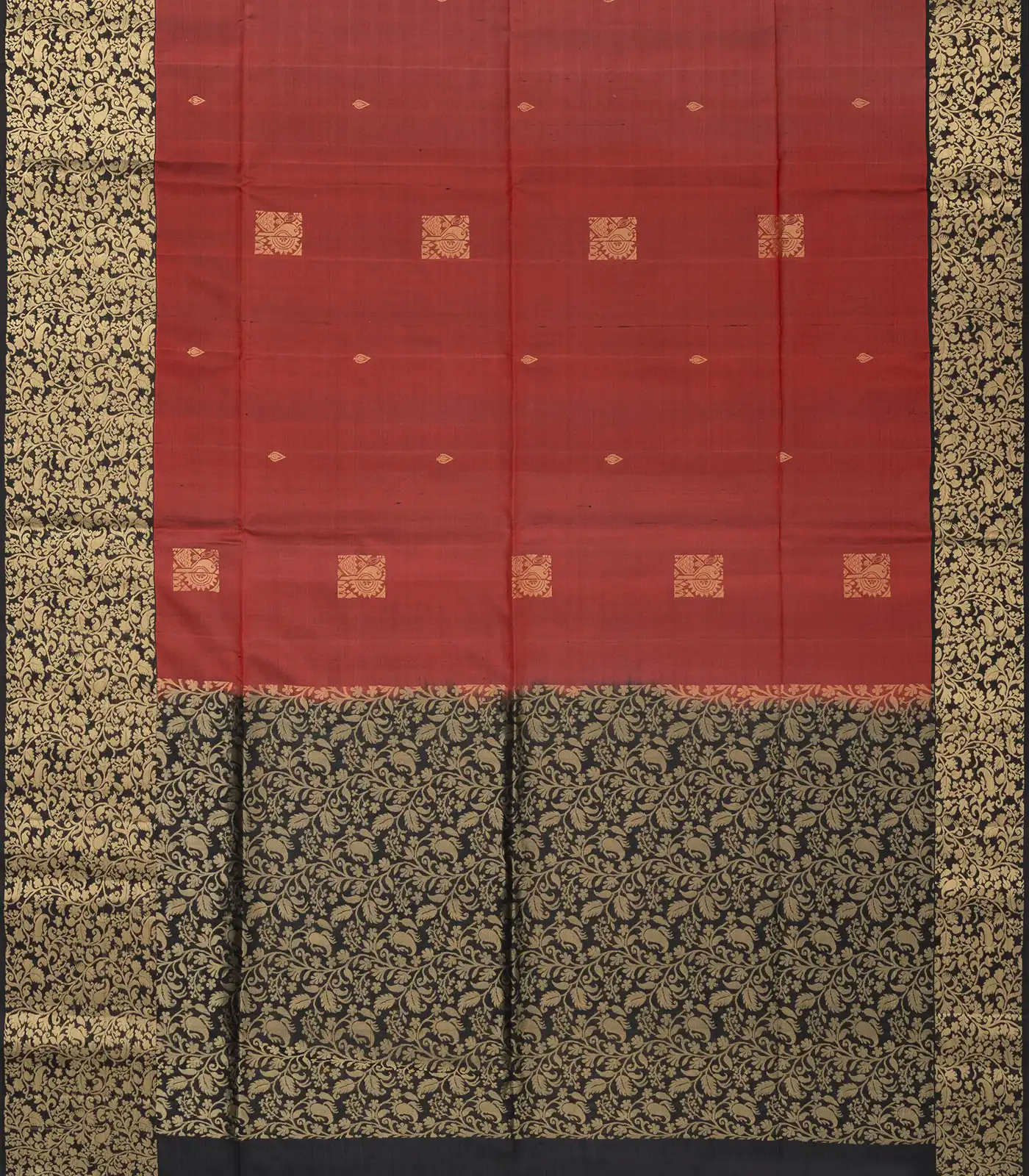 Rust Handloom Soft Silk Saree With Floral Motifs & Black Border-SO3995